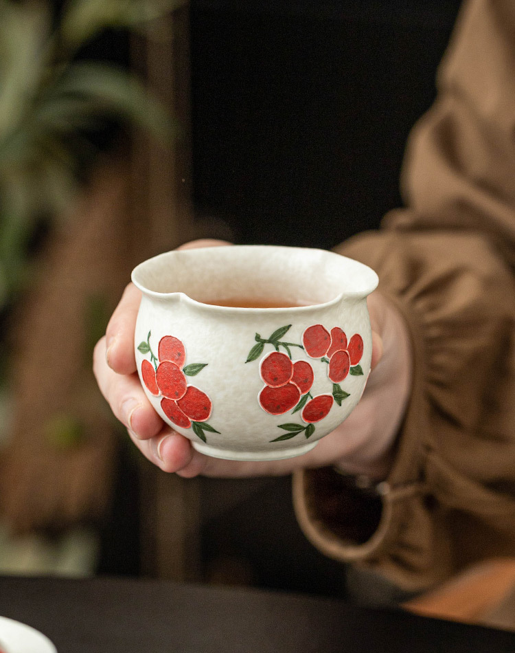 Bộ ấm trà Kung Fu trắng mỏ đá nhà máy, tách trà gốm sứ cao cấp, cốc chủ nhân chạm khắc anh đào, tách trà