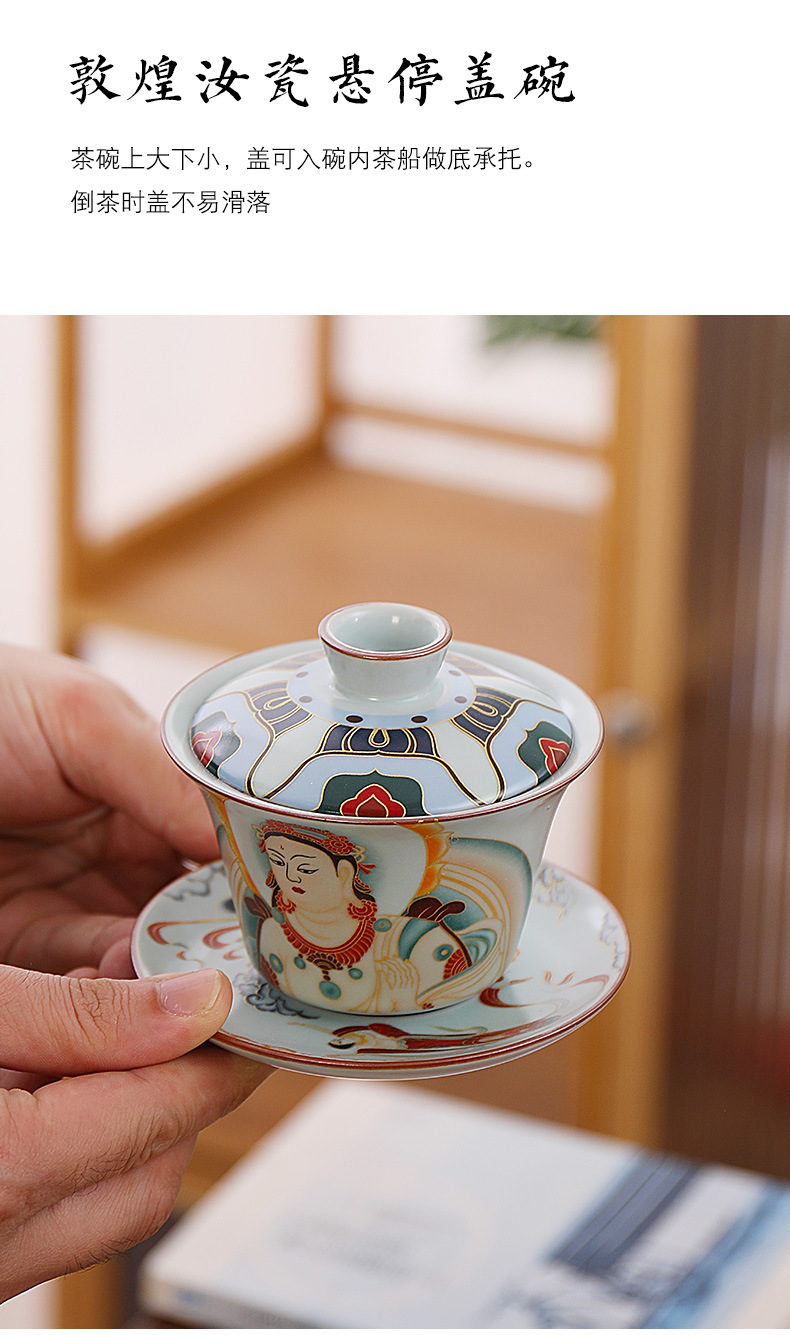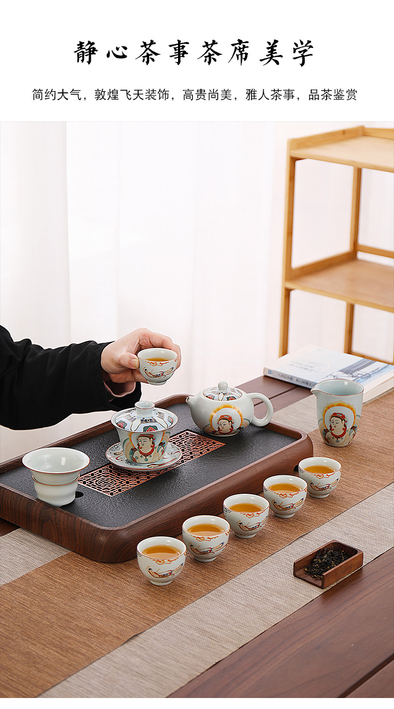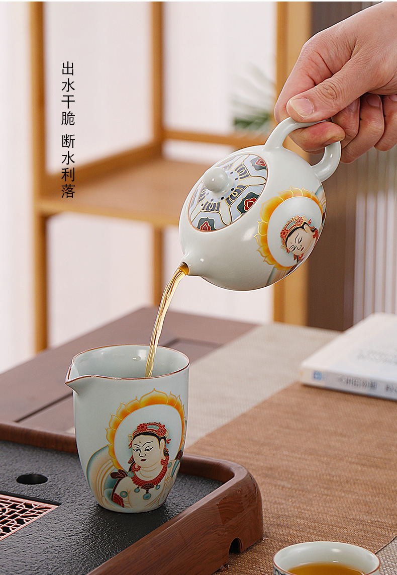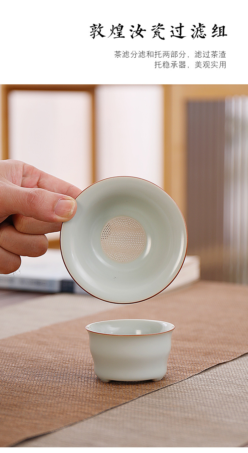 - Bộ ấm trà Kung Fu treo cổ Ru Kiln Đôn Hoàng, ấm trà văn phòng gia dụng bằng gốm sứ sang trọng nhẹ, bát có nắp, quà tặng
