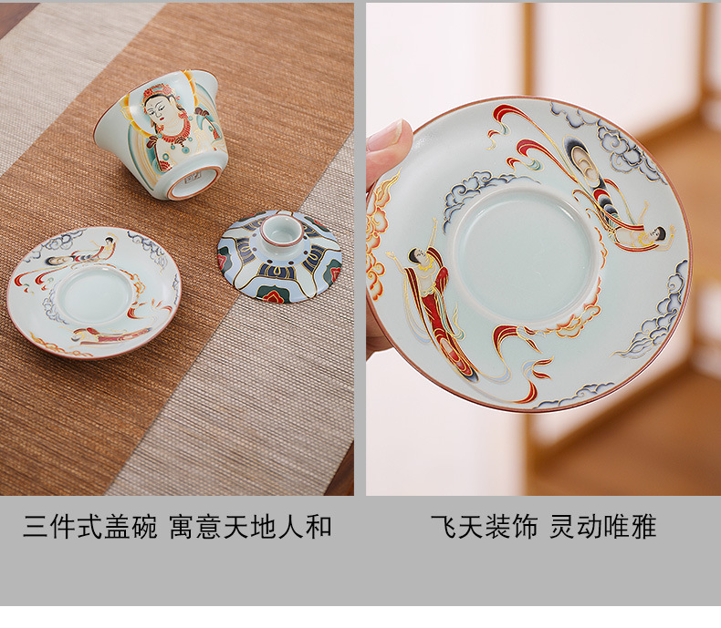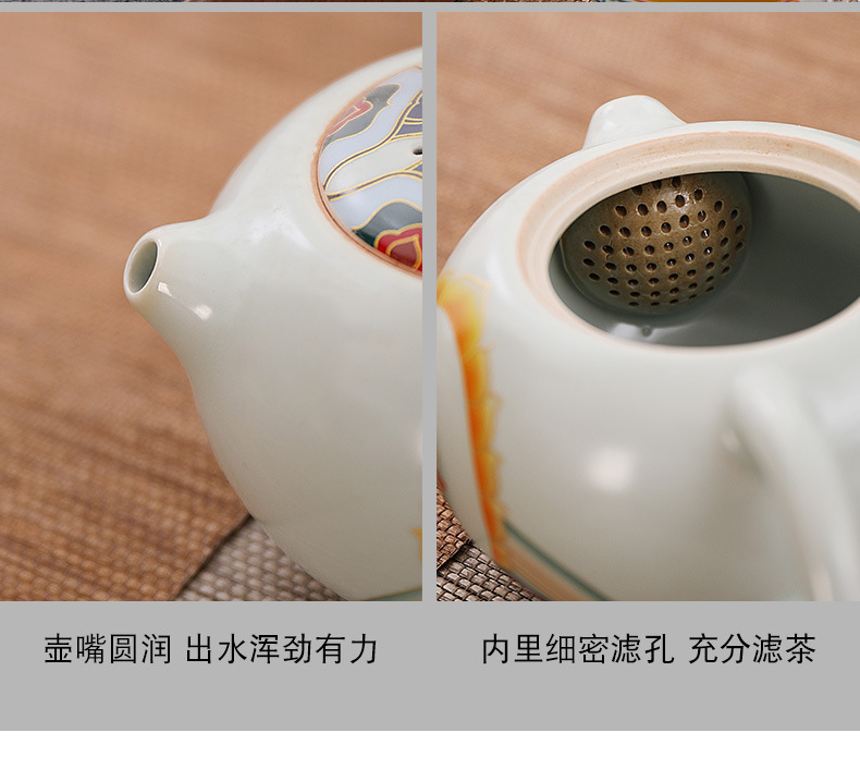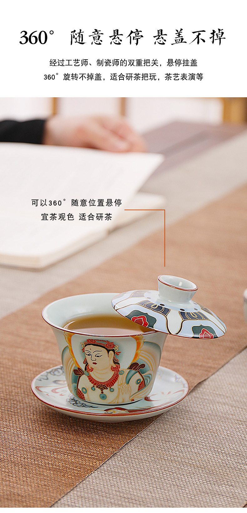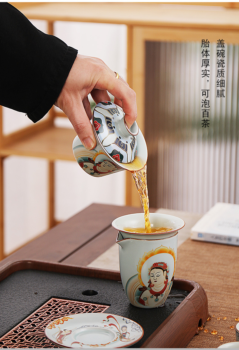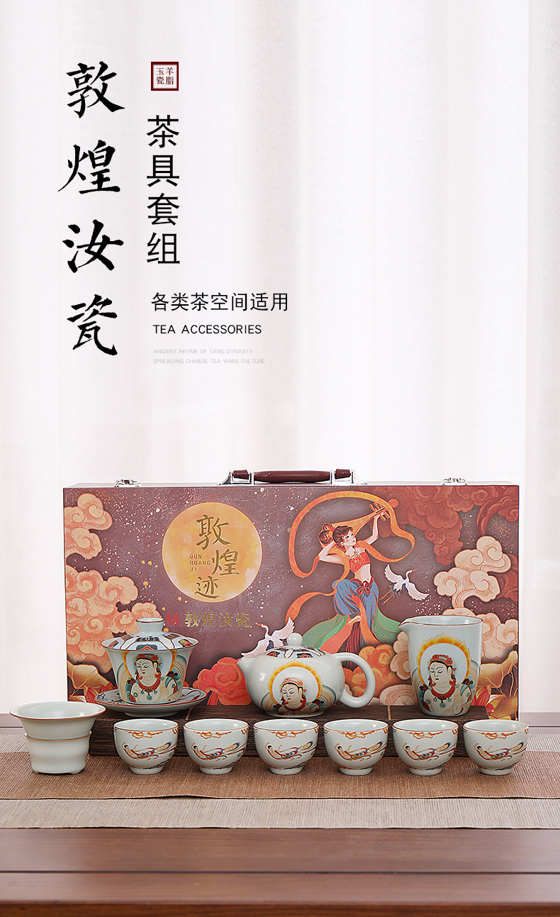 - Bộ ấm trà Kung Fu treo cổ Ru Kiln Đôn Hoàng, ấm trà văn phòng gia dụng bằng gốm sứ sang trọng nhẹ, bát có nắp, quà tặng