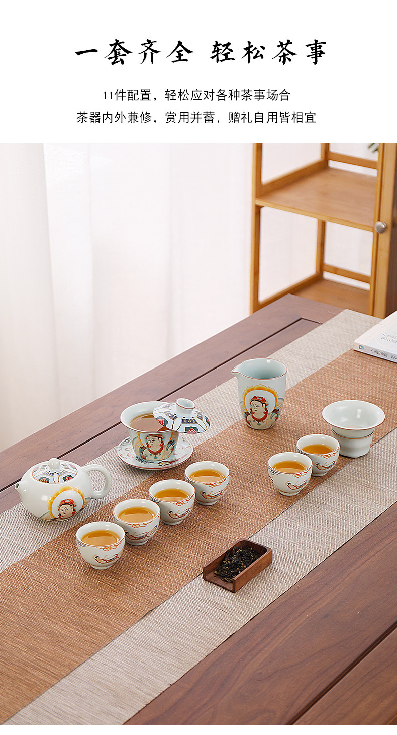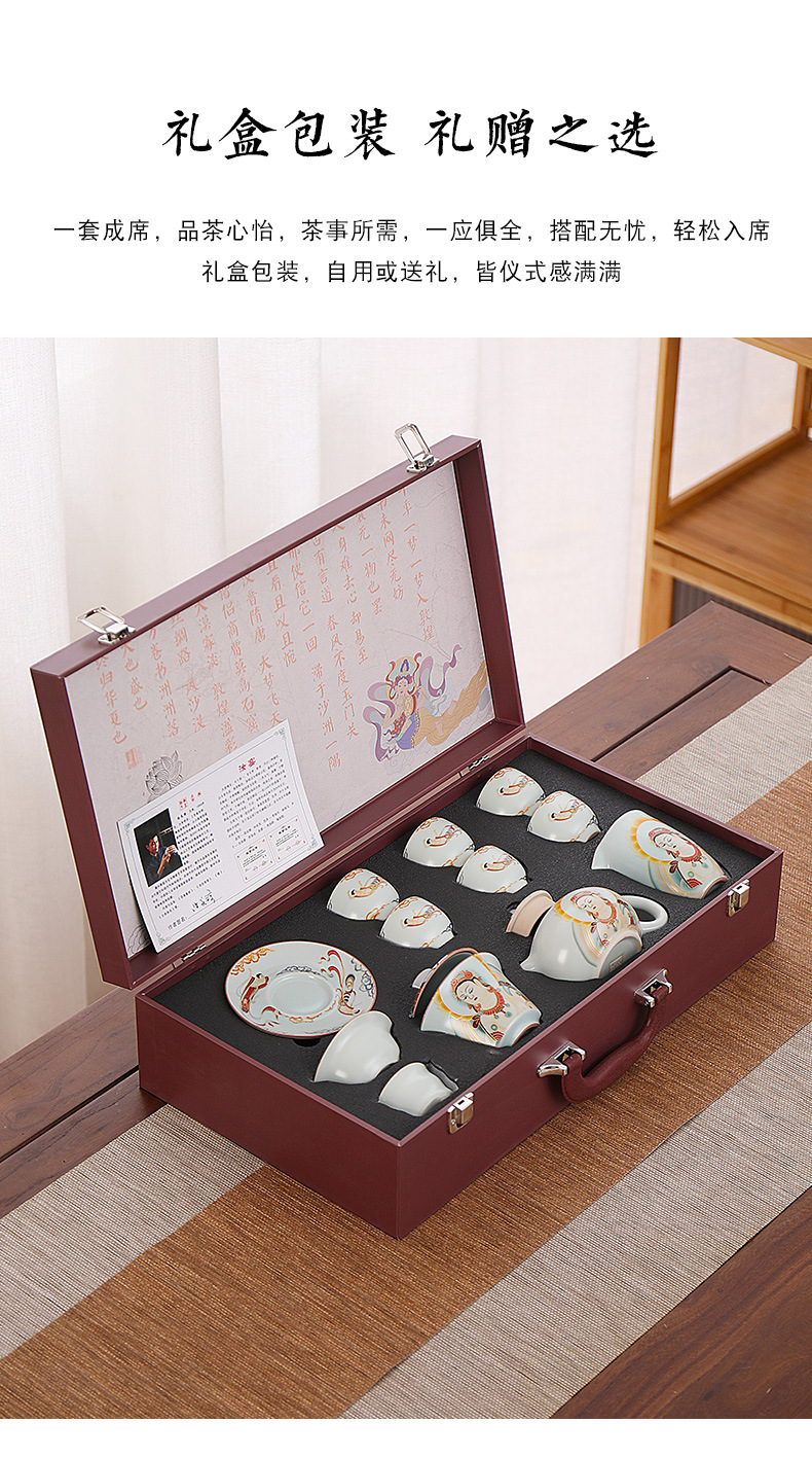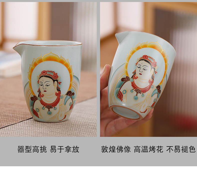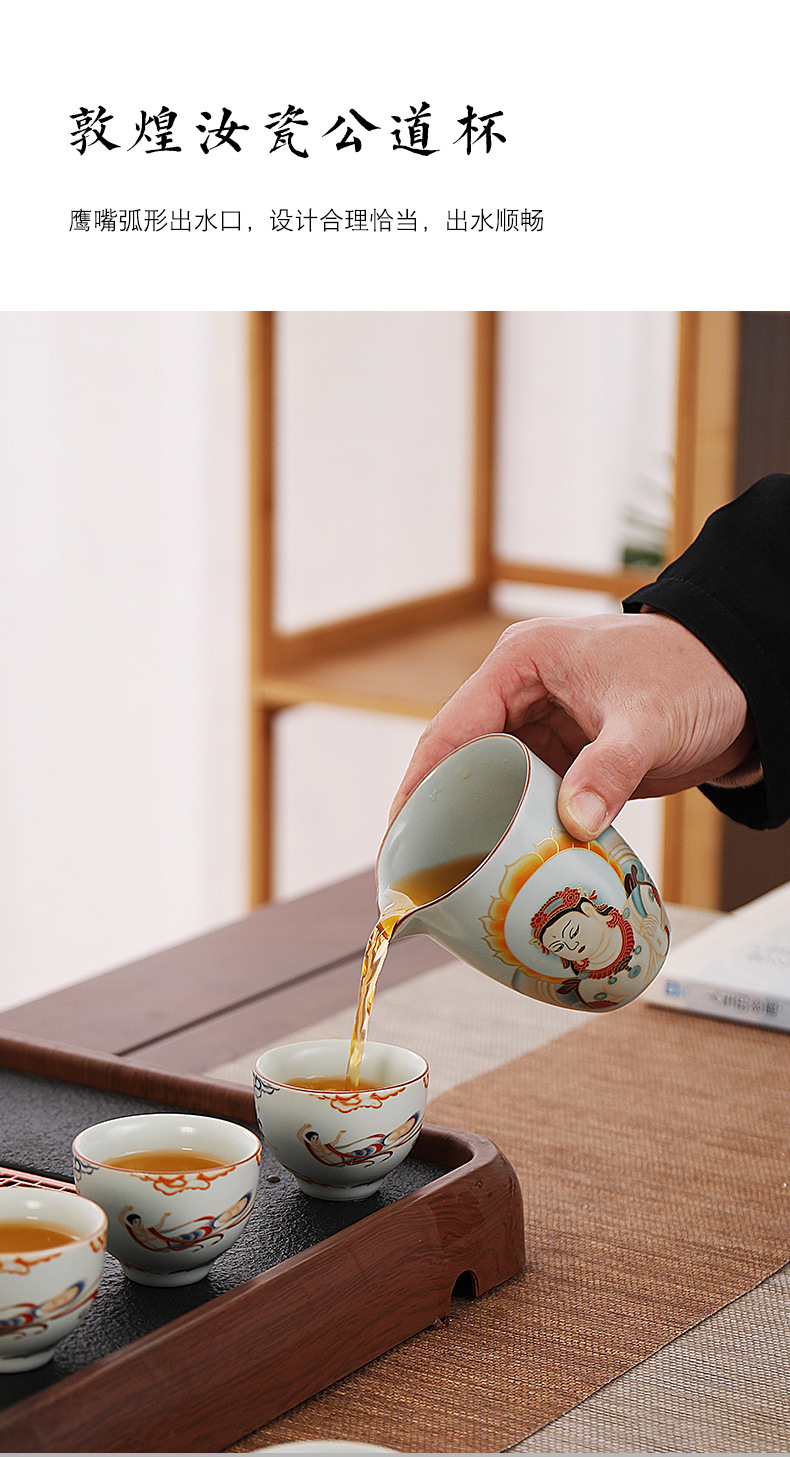 - Bộ ấm trà Kung Fu treo cổ Ru Kiln Đôn Hoàng, ấm trà văn phòng gia dụng bằng gốm sứ sang trọng nhẹ, bát có nắp, quà tặng