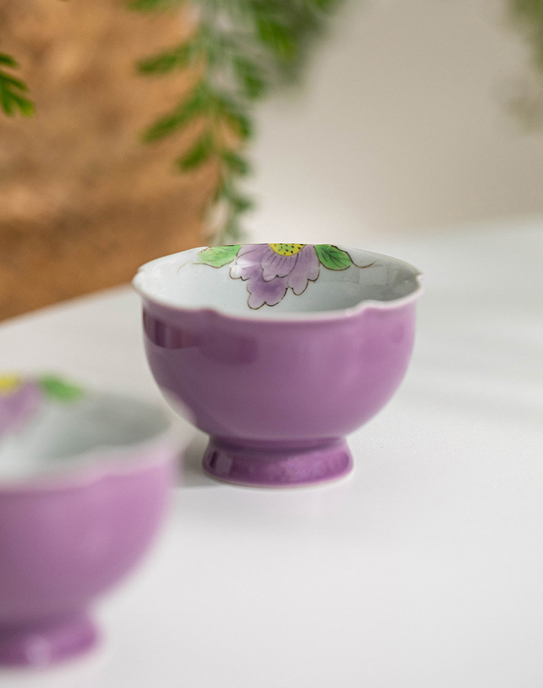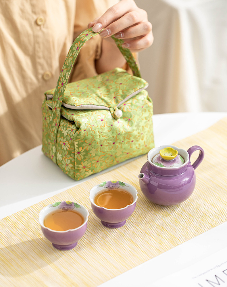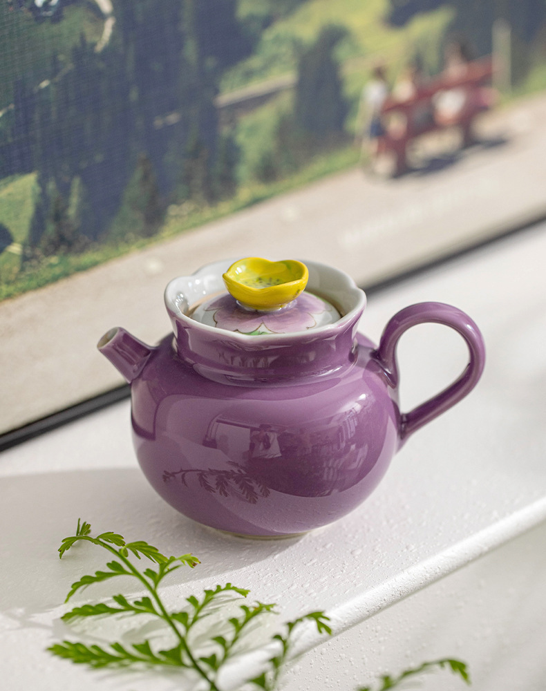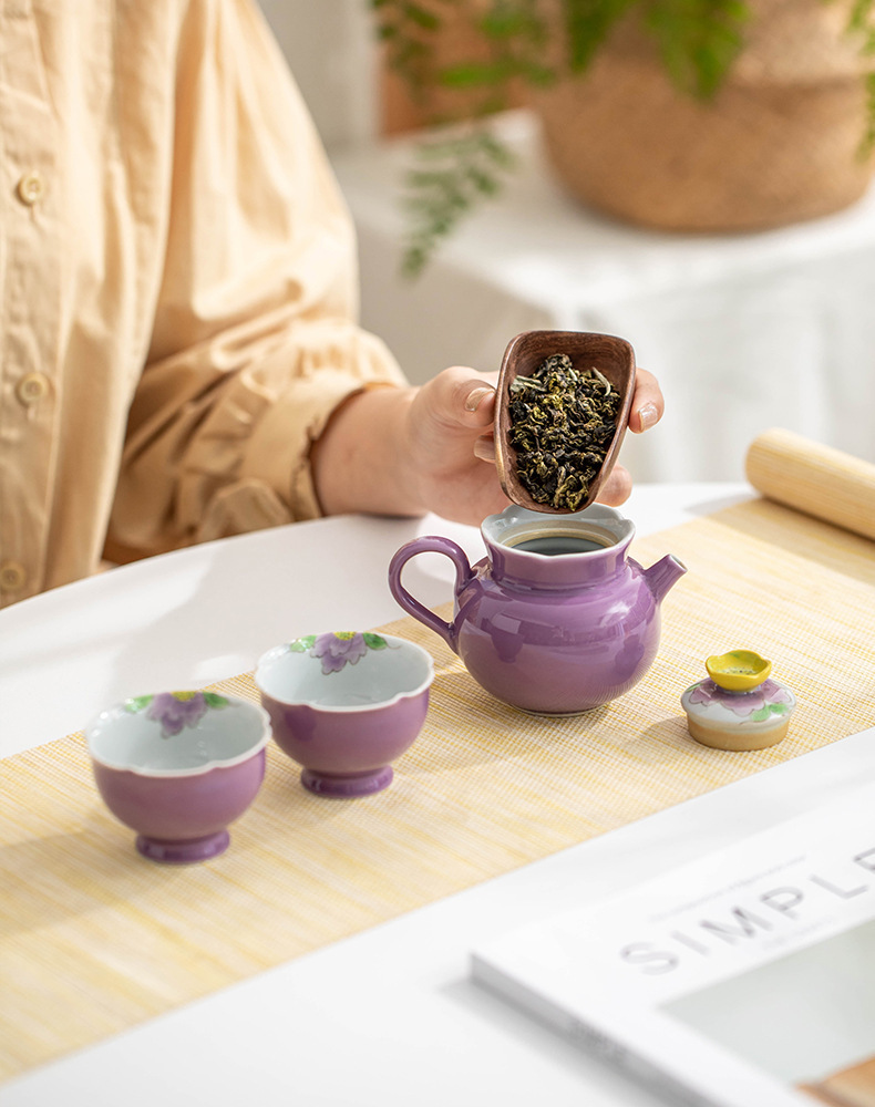 - Bộ ấm trà Kung Fu vẽ tay, ấm trà hoa mẫu đơn tím tráng men màu xám thực vật, bộ đồ du lịch gốm sứ gia dụng đựng đồ