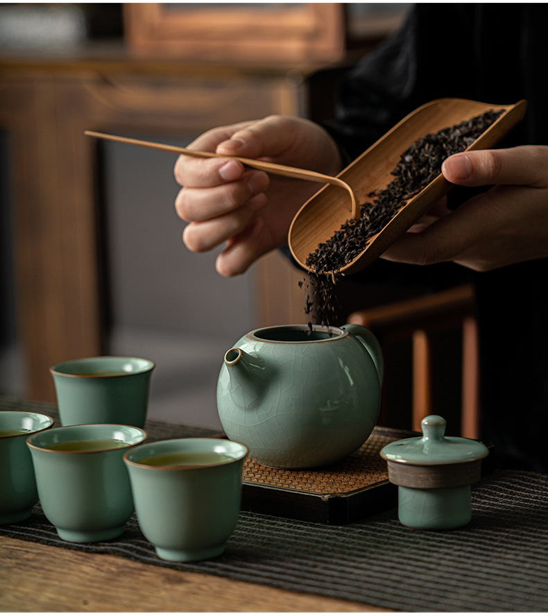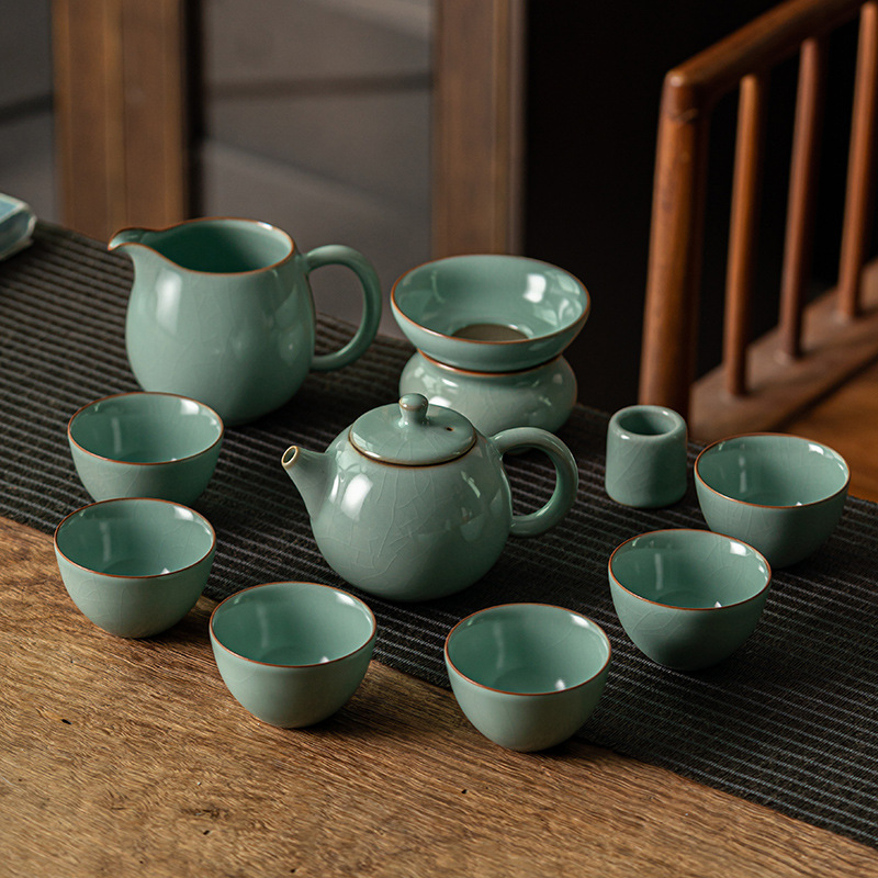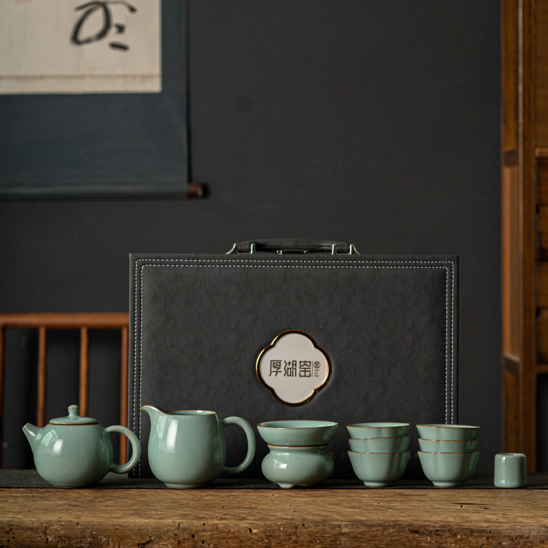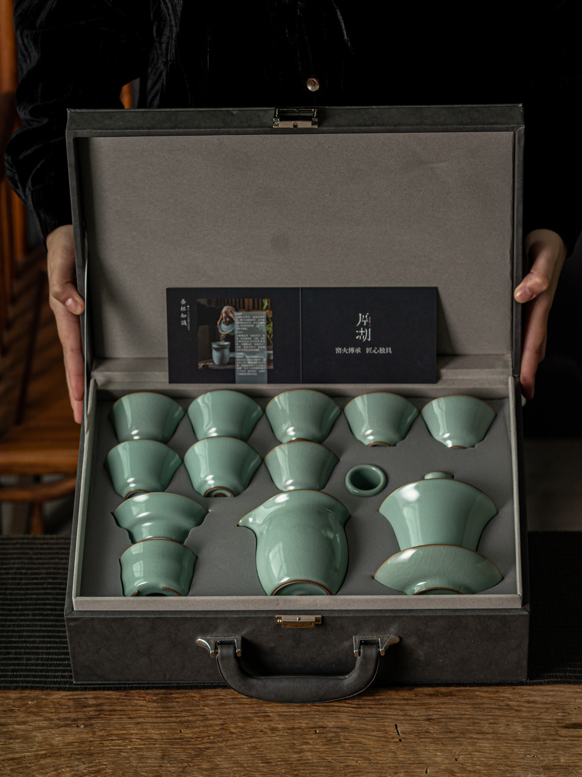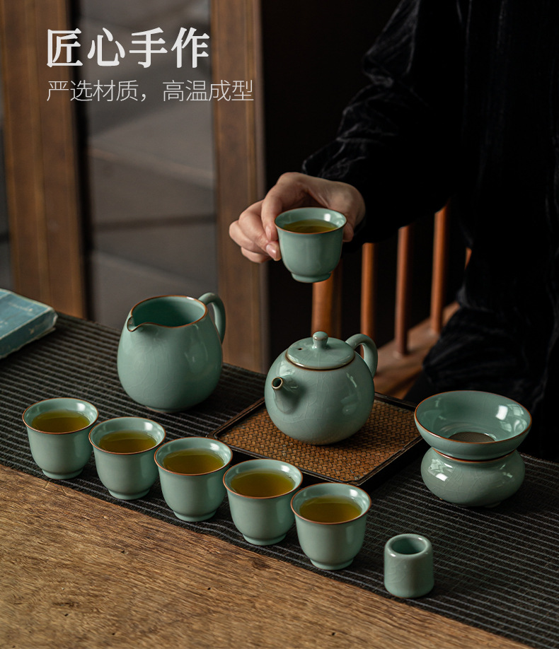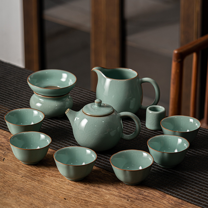- Bộ ấm trà Lò Ru Lò Dâm ấm trà gia dụng hộp quà tặng ấm trà cốc trà mở bộ ấm trà Kung Fu sứ Ru
