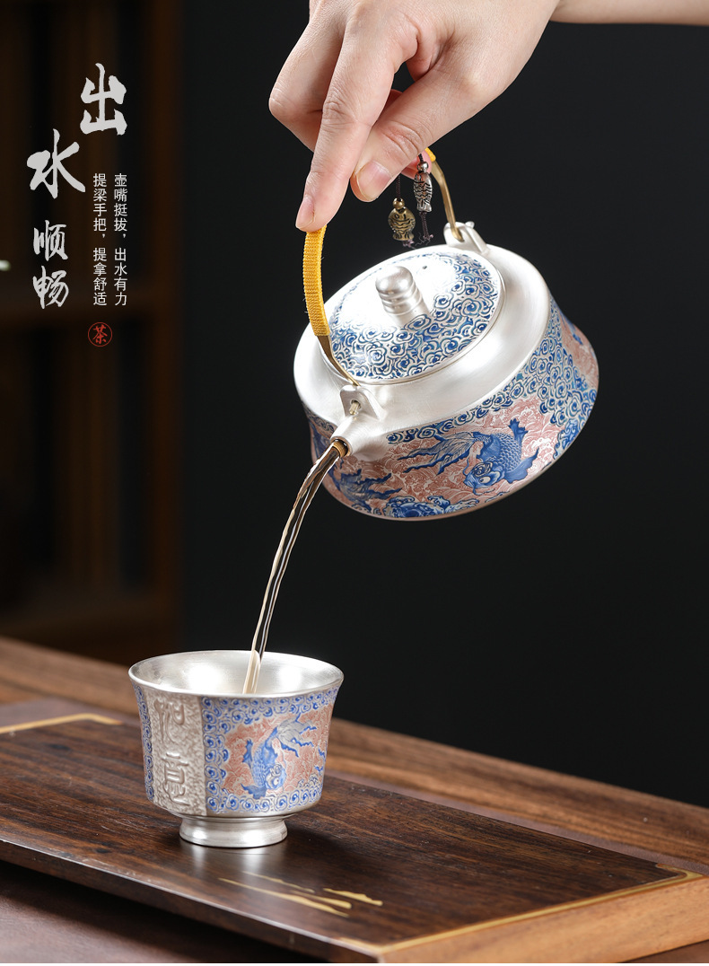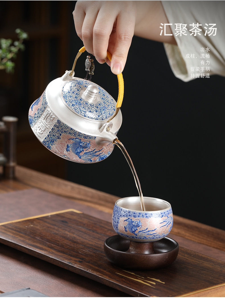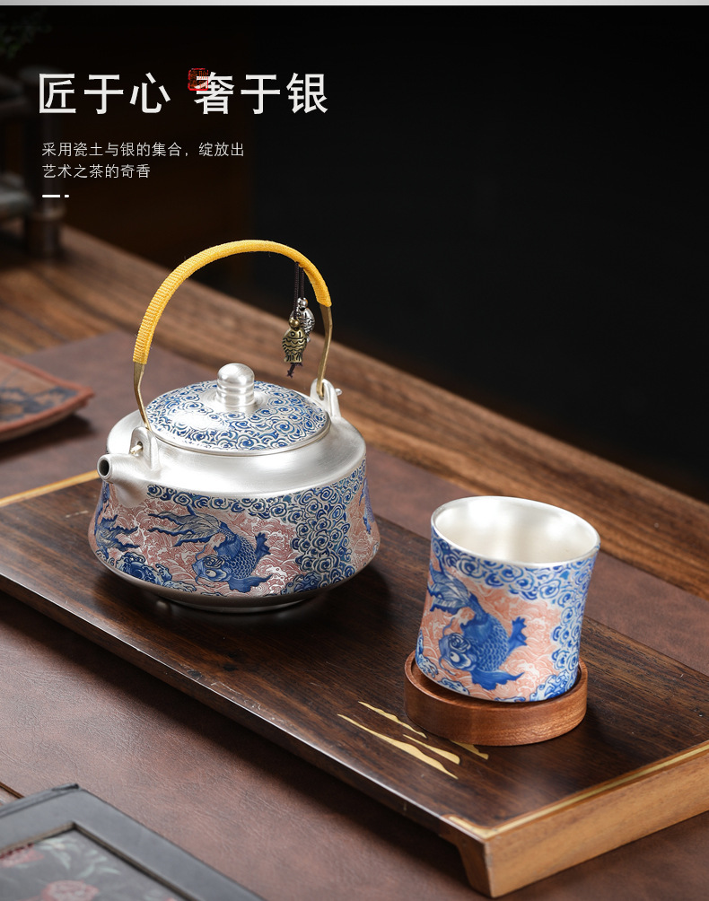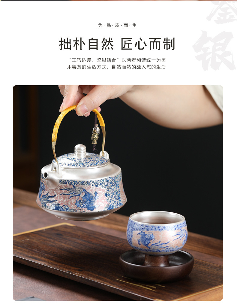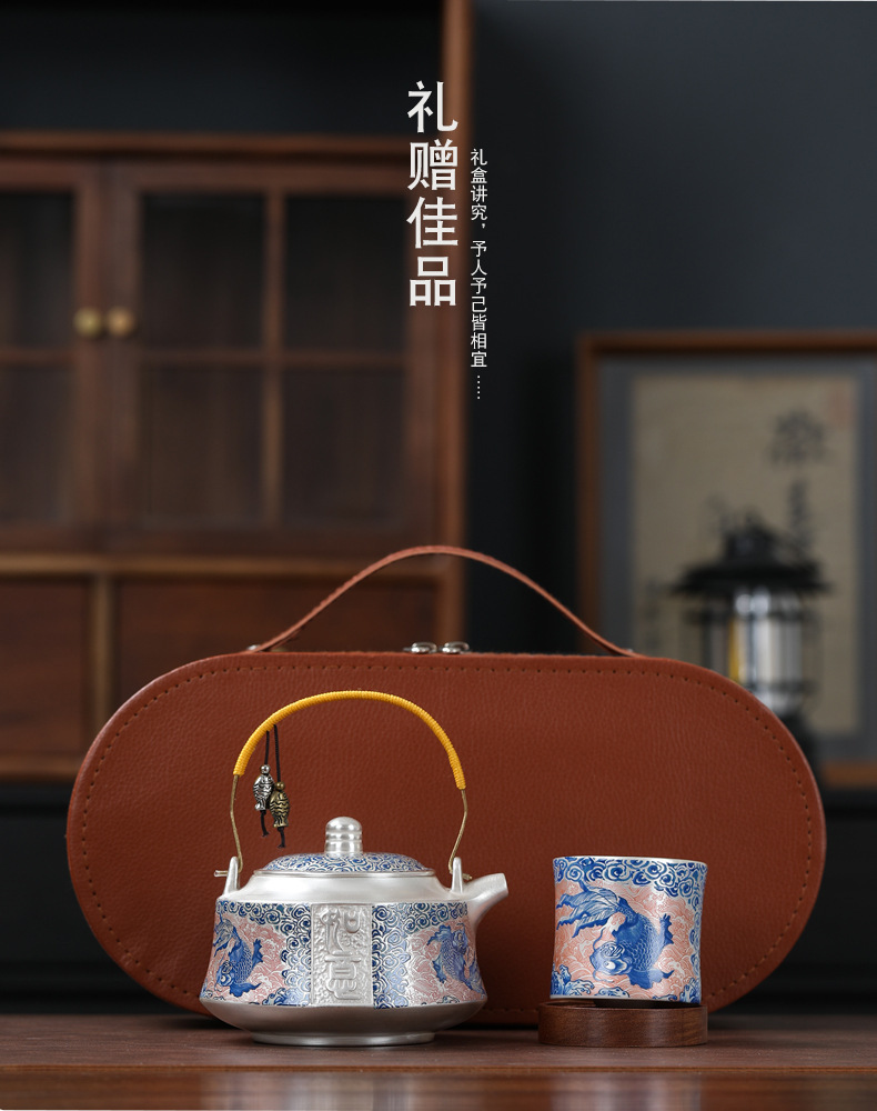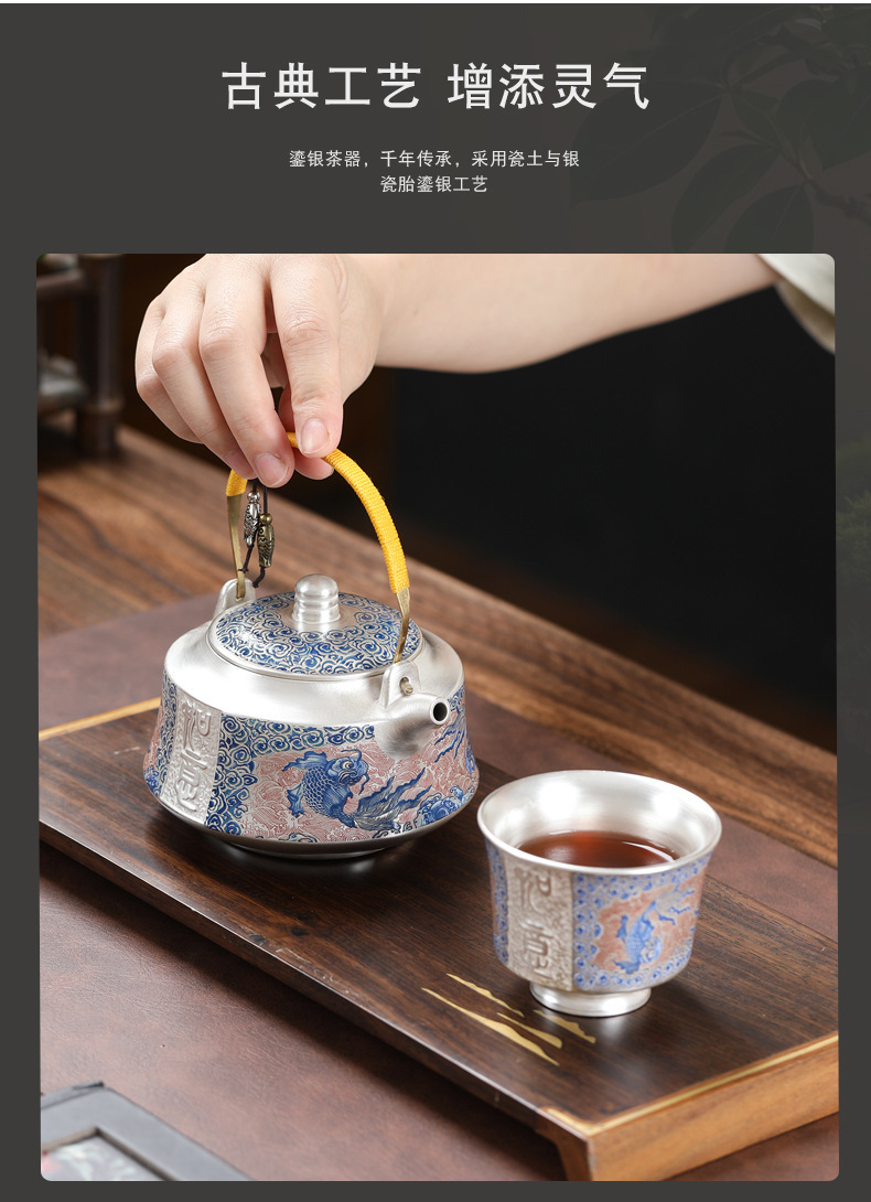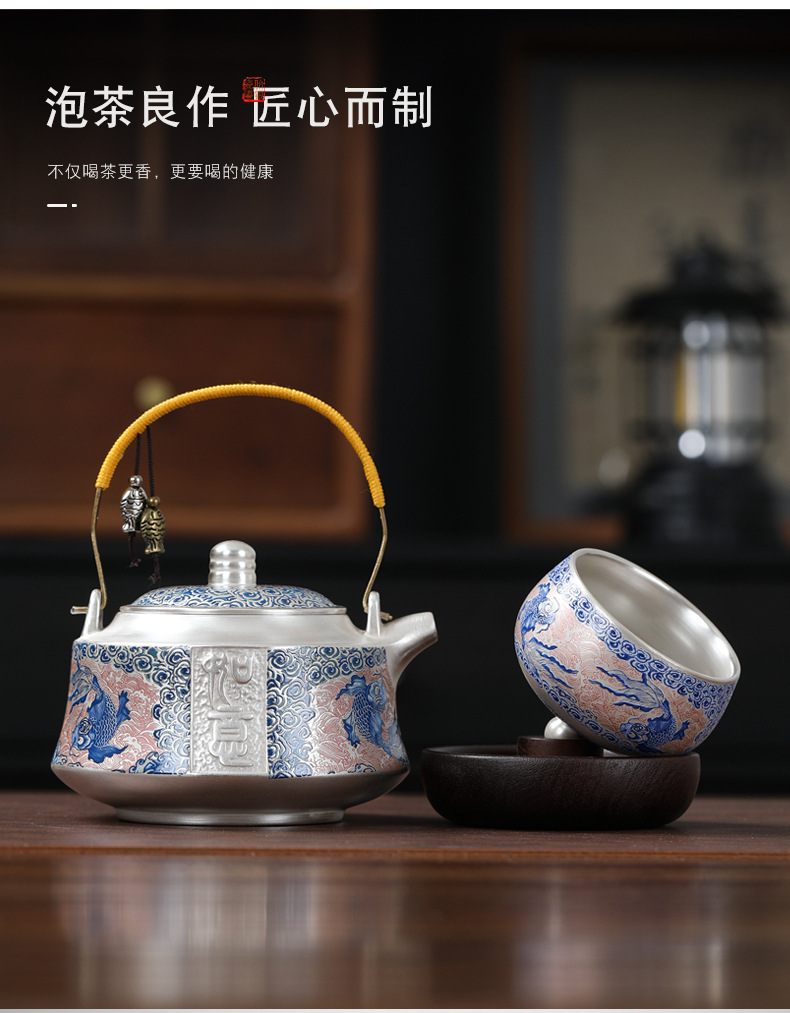 - Bộ ấm trà mạ bạc một ấm bốn cốc ấm trà Kung Fu tách trà cao cấp quà tặng công ty cho người lớn tuổi về hưu
