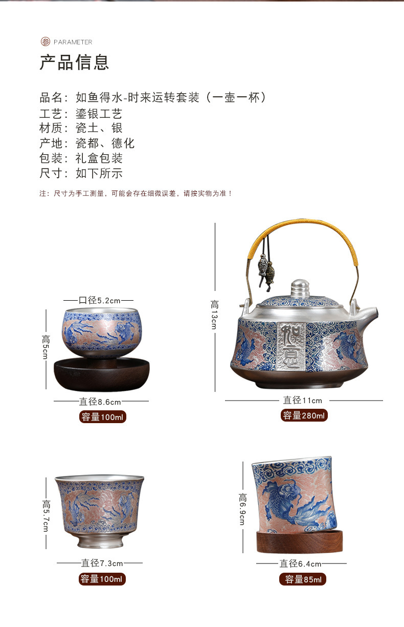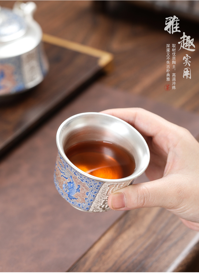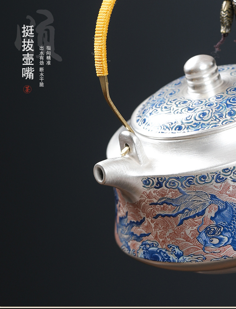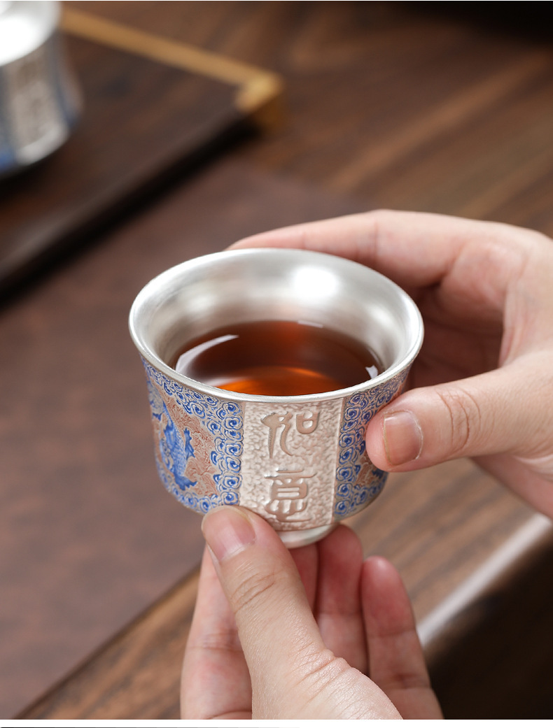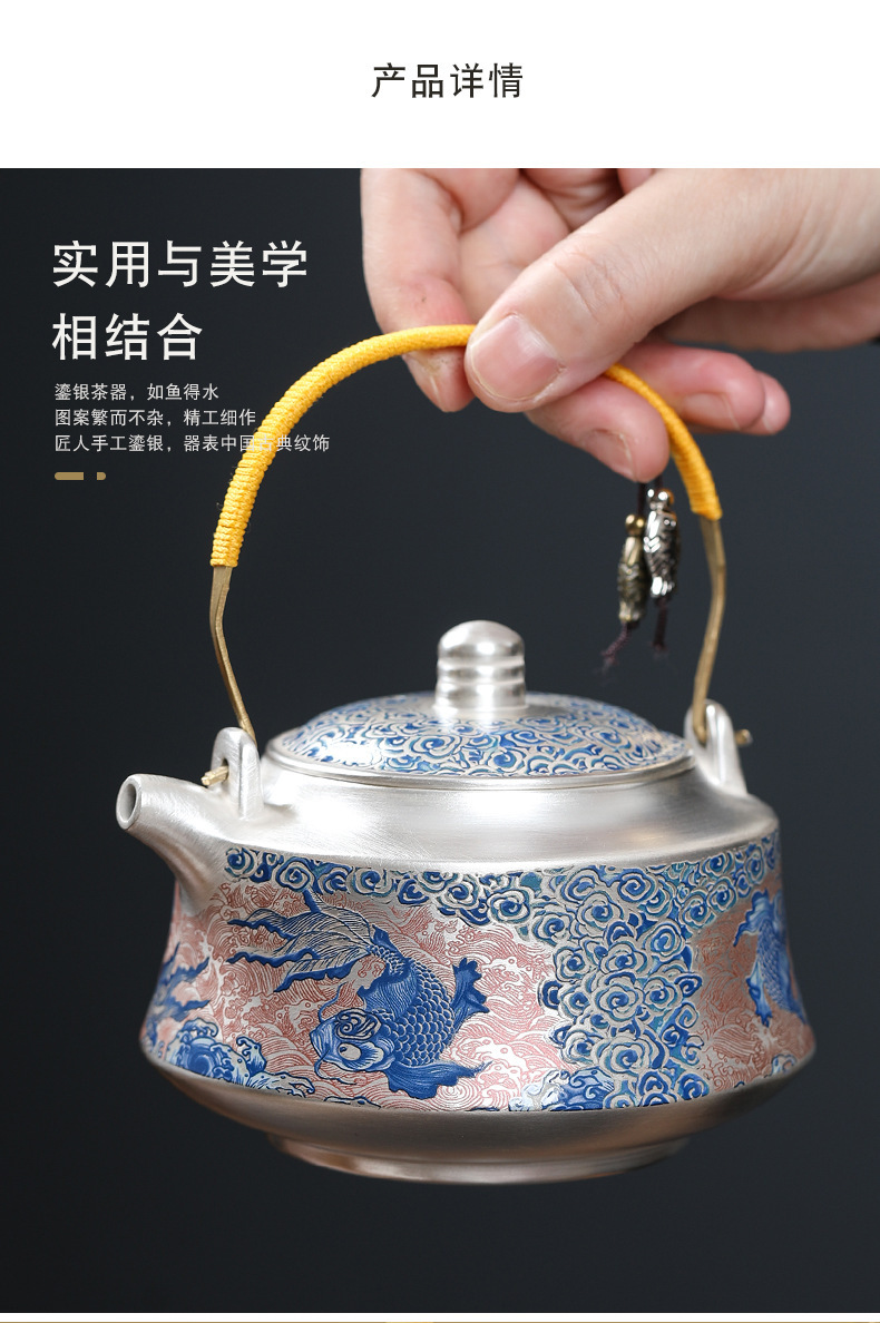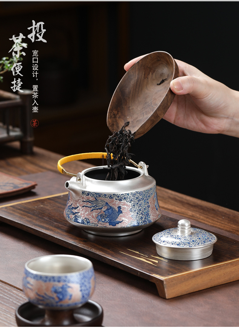 - Bộ ấm trà mạ bạc một ấm bốn cốc ấm trà Kung Fu tách trà cao cấp quà tặng công ty cho người lớn tuổi về hưu