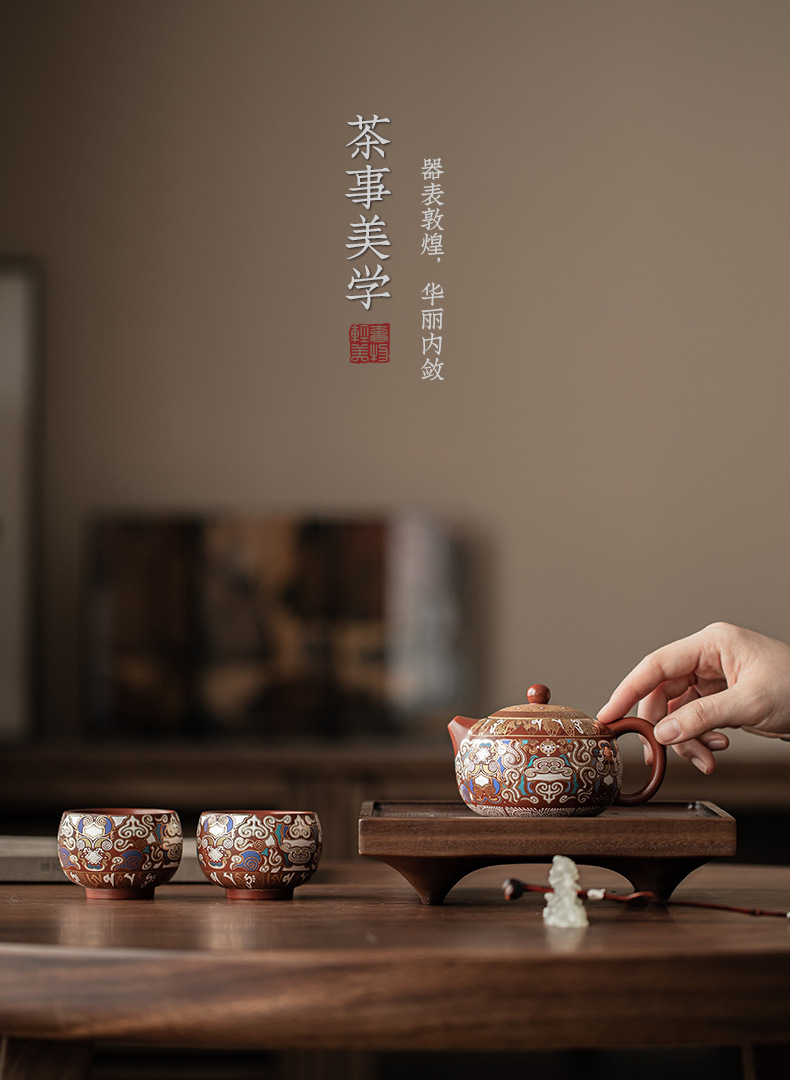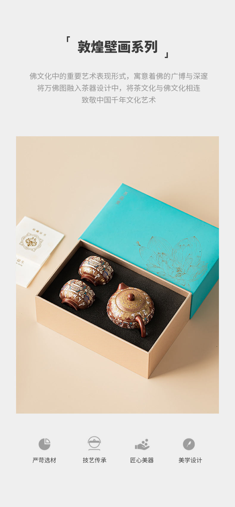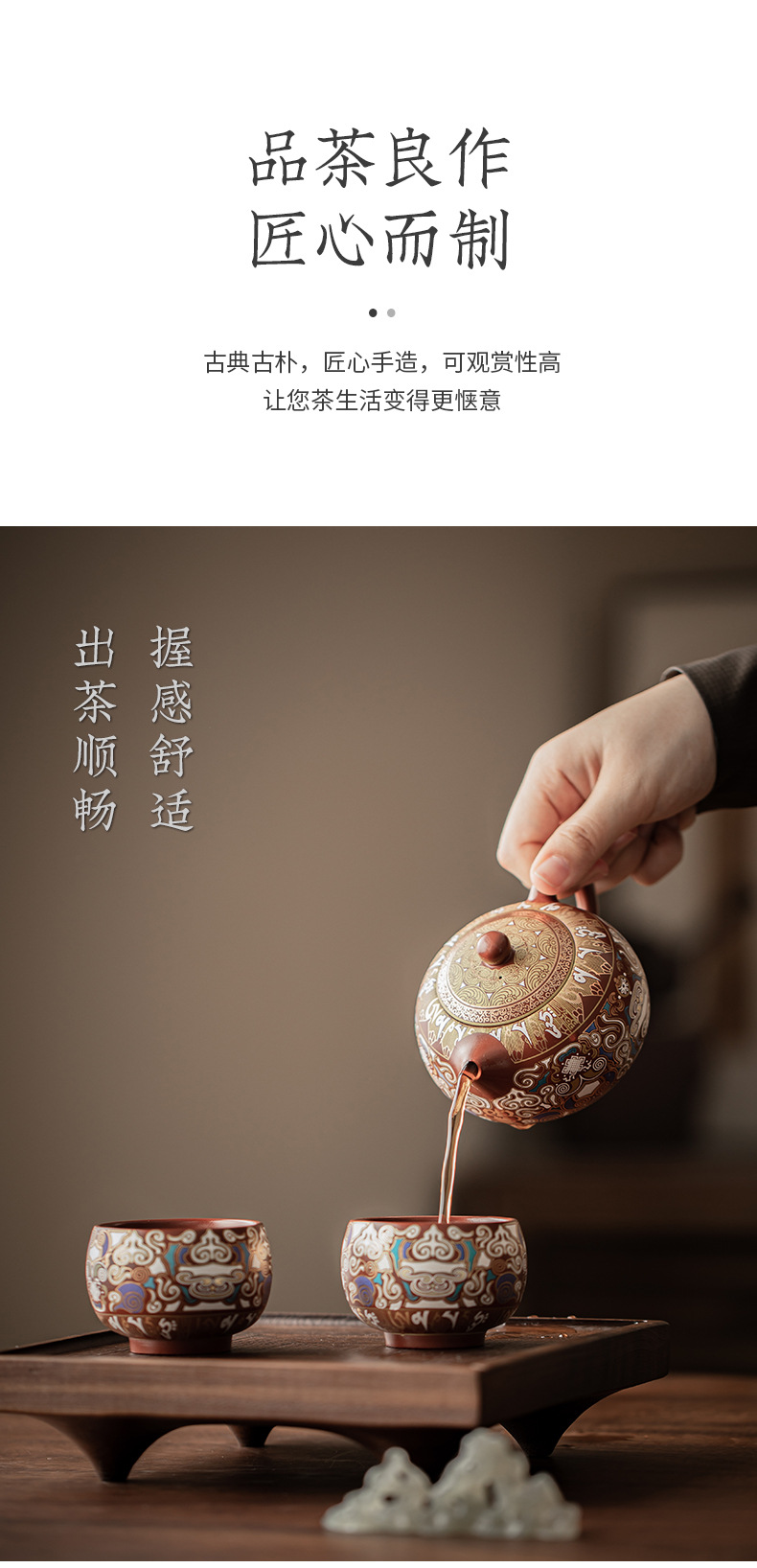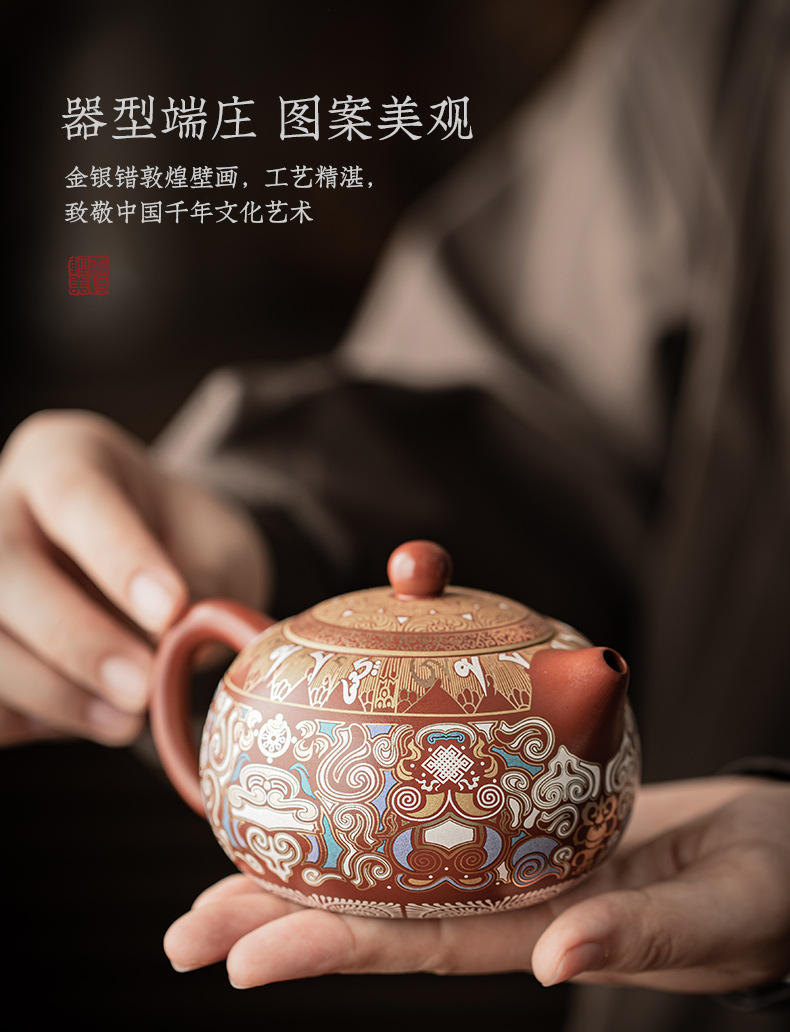 - Bộ ấm trà màu tím cát sai màu vàng bạc Đôn Hoàng, ấm Xi Shi, bộ trà gia dụng một ấm hai chén, quà tặng khách hàng