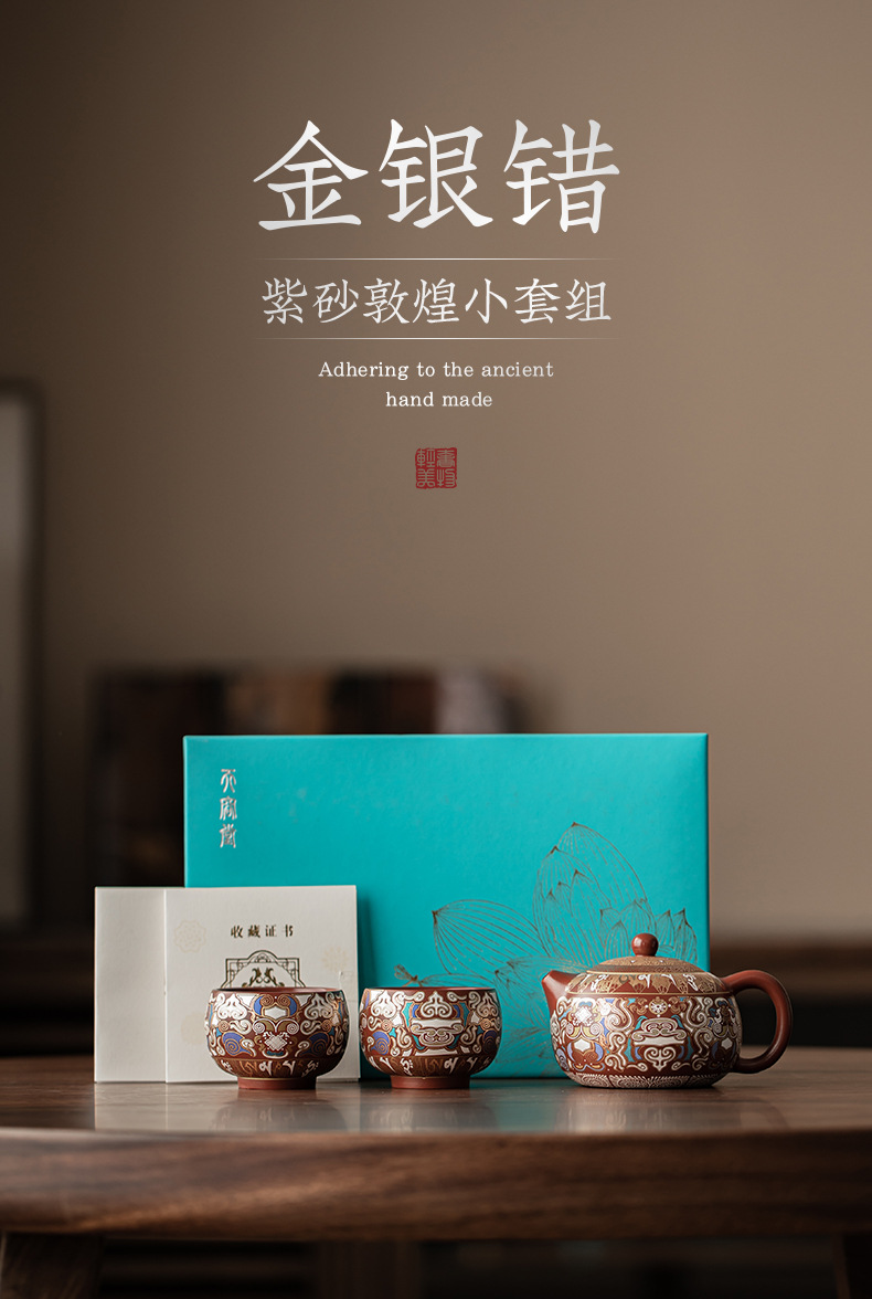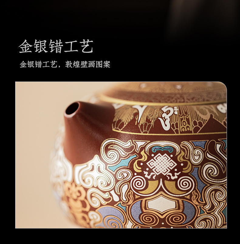 Bộ ấm trà màu tím cát sai màu vàng bạc Đôn Hoàng, ấm Xi Shi, bộ trà gia dụng một ấm hai chén, quà tặng khách hàng