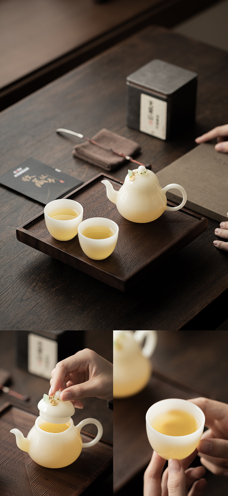 - Bộ ấm trà một ấm hai cốc sứ ngọc bích đơn giản ấm trà cốc trà nhóm pha trà gia dụng hộp quà