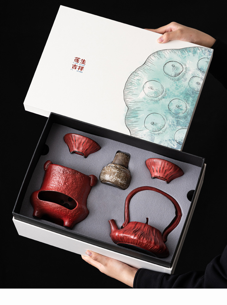Bộ ấm trà pha trà trong lò, hộp quà, ấm trà pha trà tốt lành hạt sen, bộ ấm trà, bộ hoàn chỉnh, sáng tạo