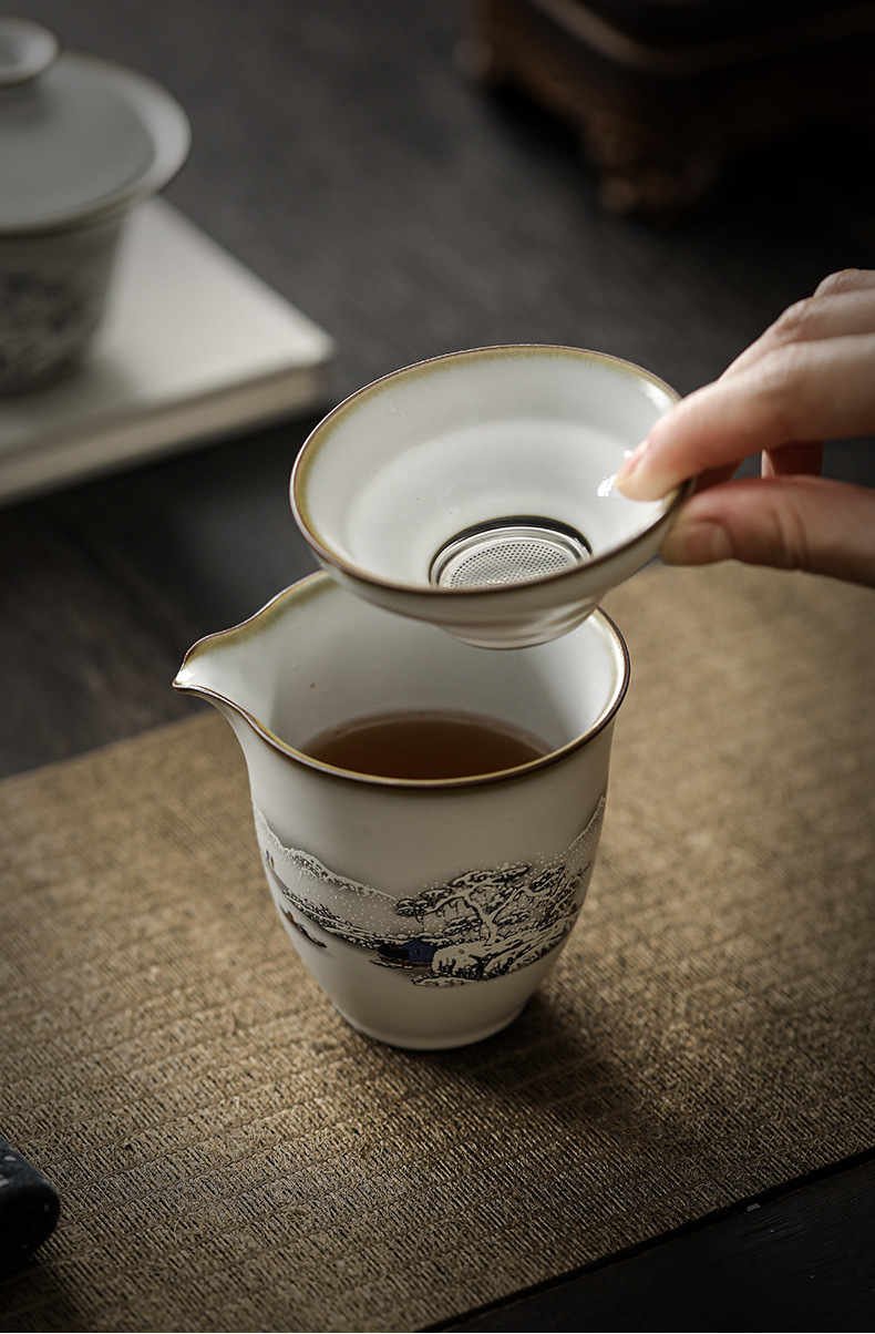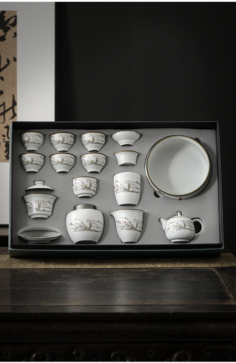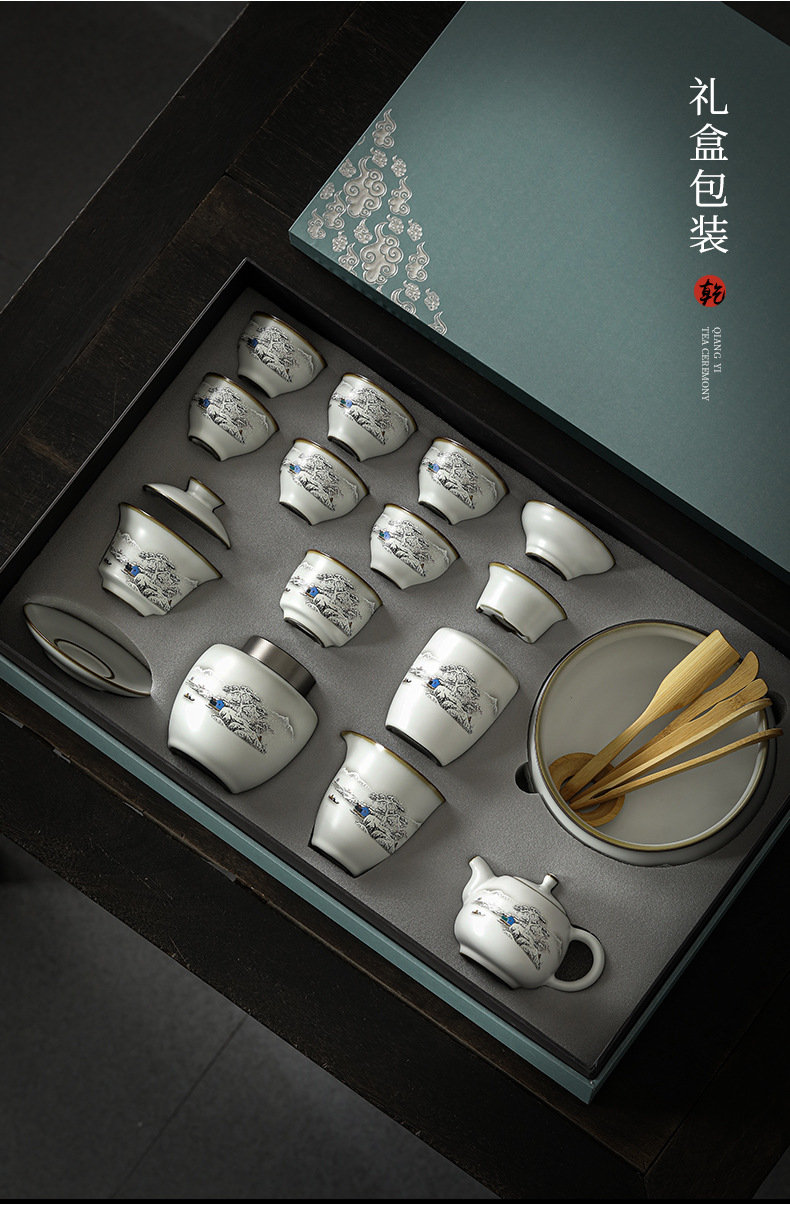 - Bộ ấm trà Ru Kiln Bộ hộp quà bát ba nắp gốm sứ cốc pha trà cao cấp Bộ ấm trà Kung Fu tặng quà cốc công bằng gia dụng