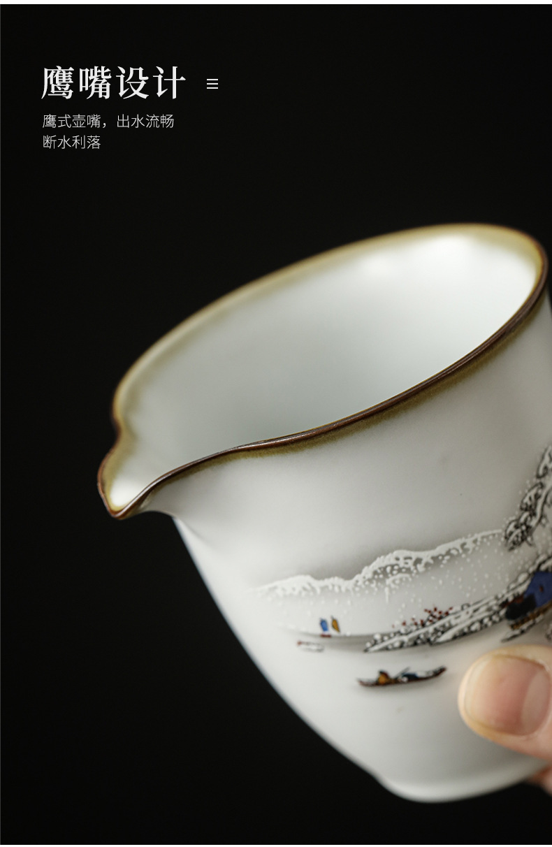 Bộ ấm trà Ru Kiln Bộ hộp quà bát ba nắp gốm sứ cốc pha trà cao cấp Bộ ấm trà Kung Fu tặng quà cốc công bằng gia dụng