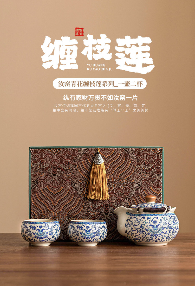 - Bộ ấm trà Ruyao, hộp quà, hoa sen xanh trắng, một ấm hai chén, quà Tết thiết thực cho cha mẹ người lớn tuổi