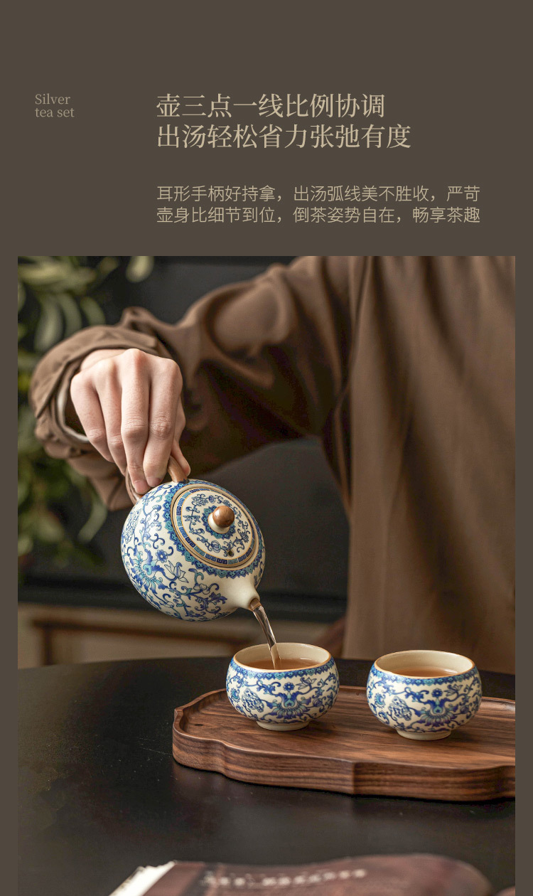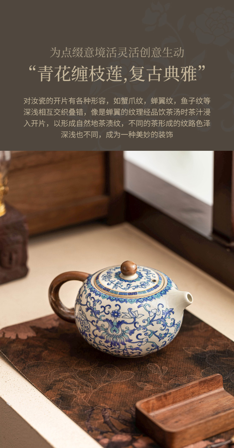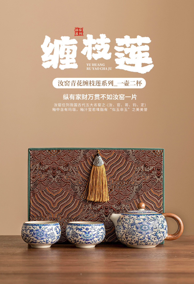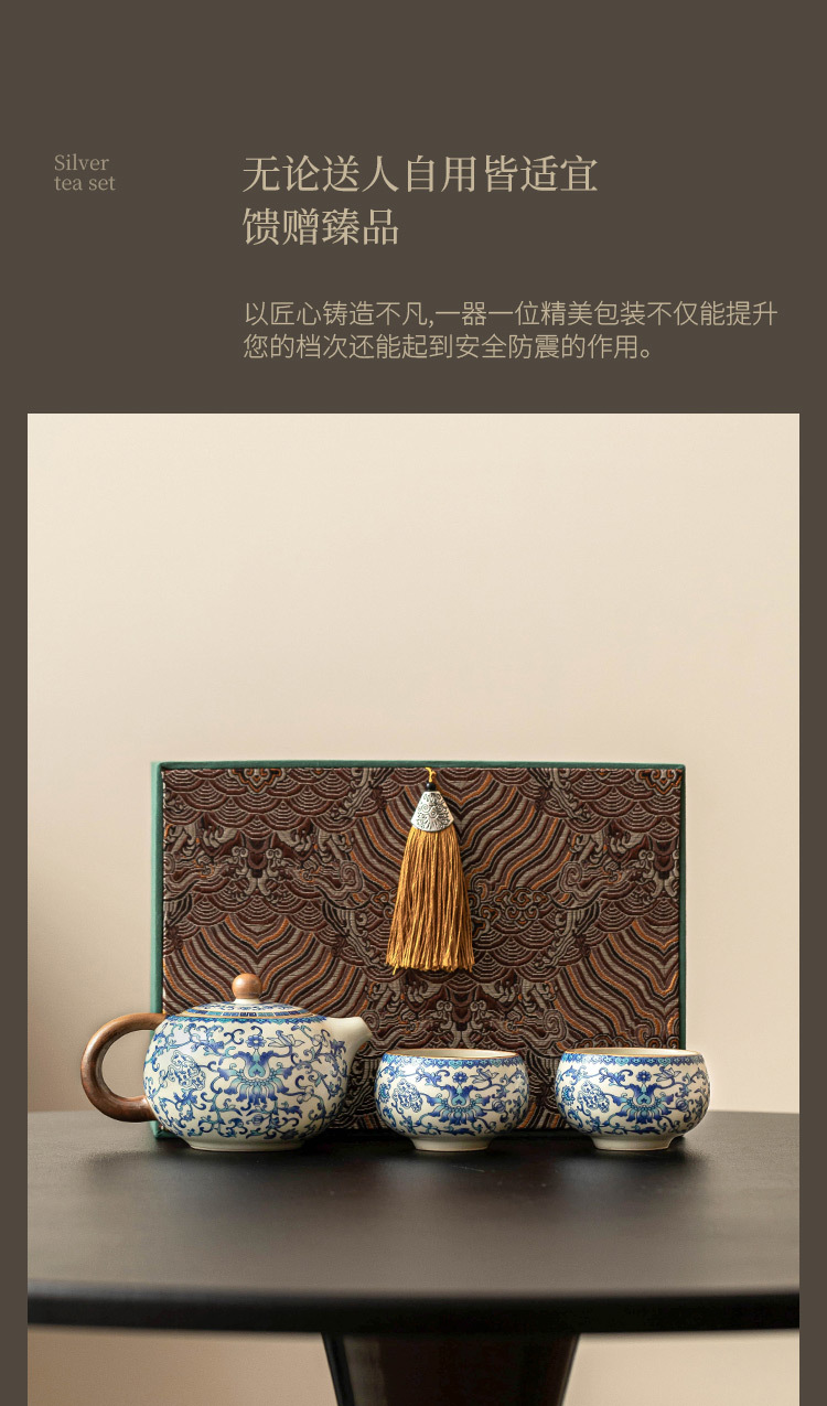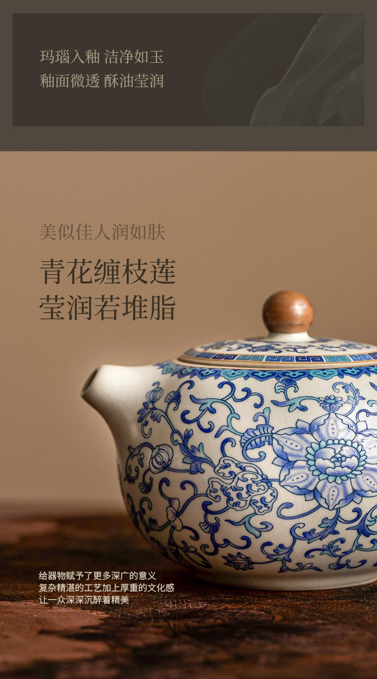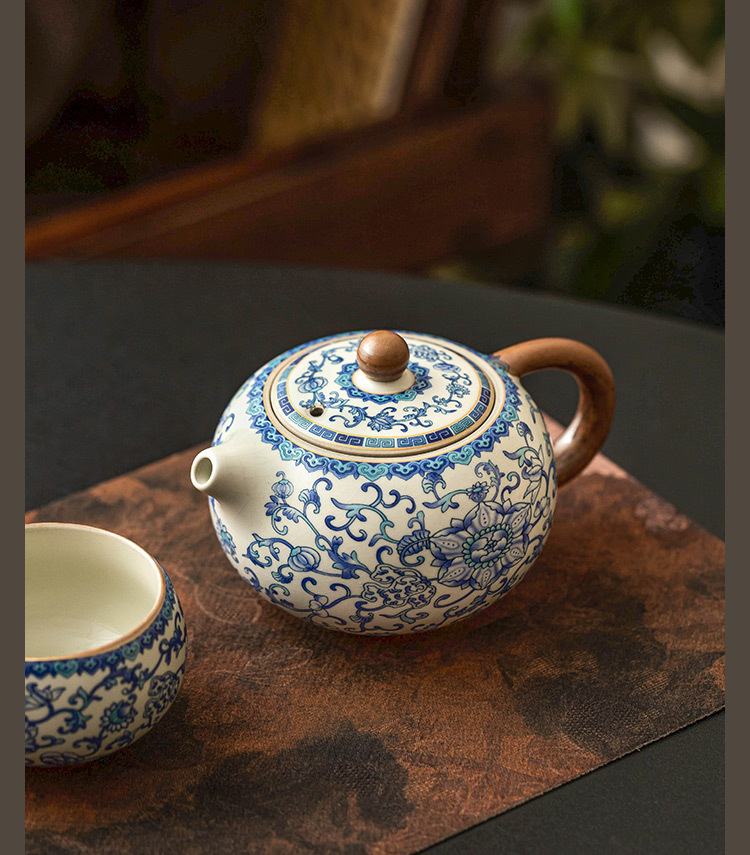 Bộ ấm trà sang trọng nhẹ Ruyao hộp quà tặng ấm trà hoa sen xanh trắng