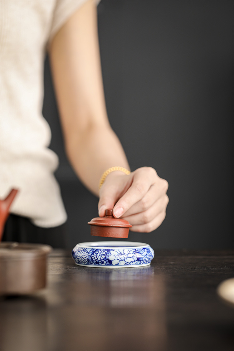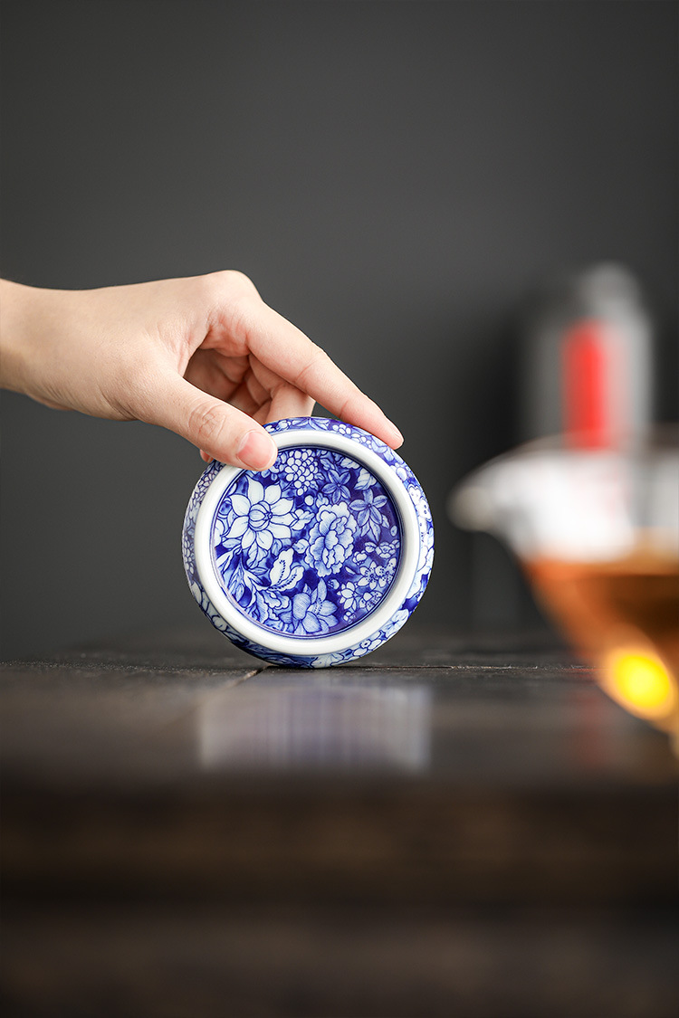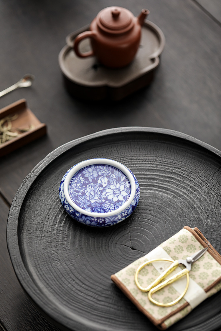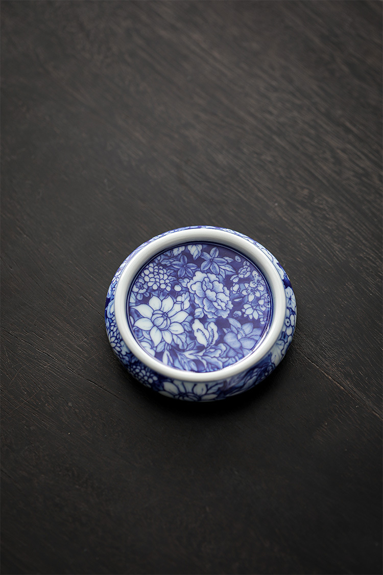 几欢 青花瓷茶器万花盖置仿古陶瓷壶承盖托茶杯杯垫茶具茶道配件