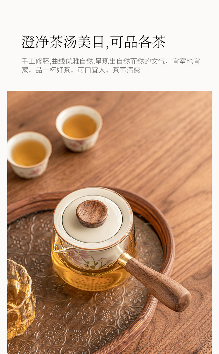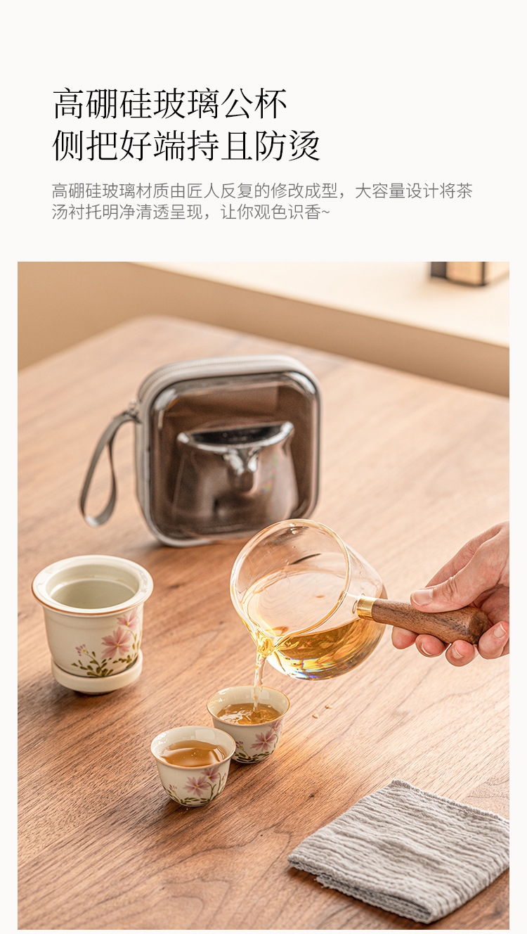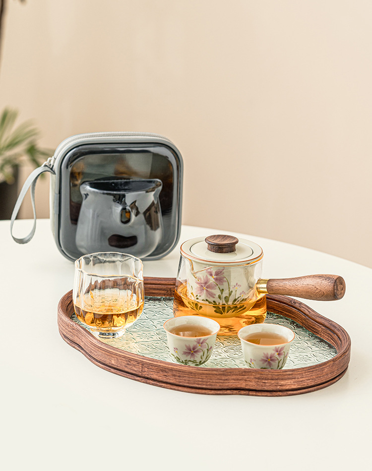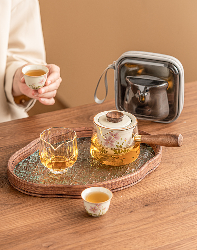 - Bộ ấm trà tay cầm bên hoa cúc nhỏ vẽ tay Bộ trà khay pha trà Kung Fu gia dụng Bộ trà du lịch ngoài trời di động