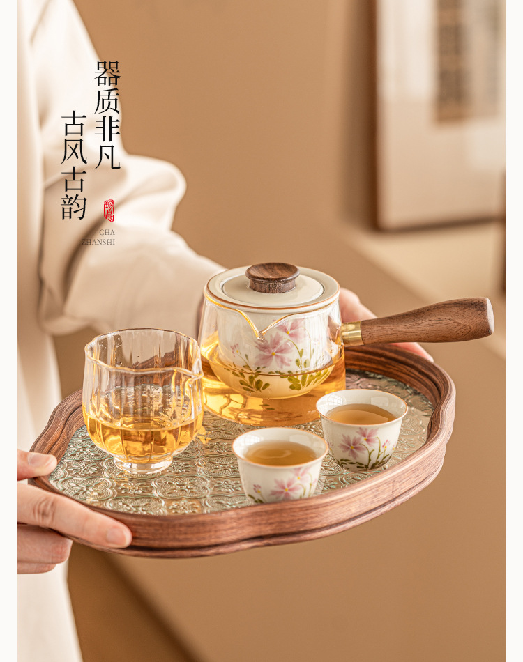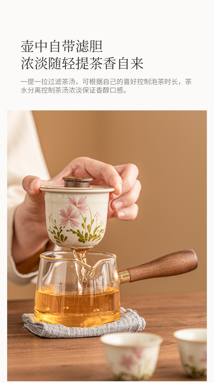 Bộ ấm trà tay cầm bên hoa cúc nhỏ vẽ tay Bộ trà khay pha trà Kung Fu gia dụng Bộ trà du lịch ngoài trời di động