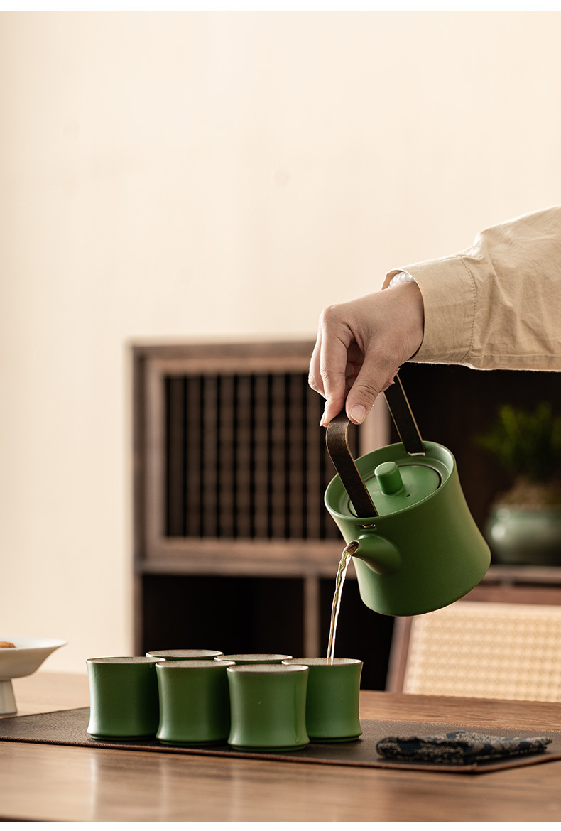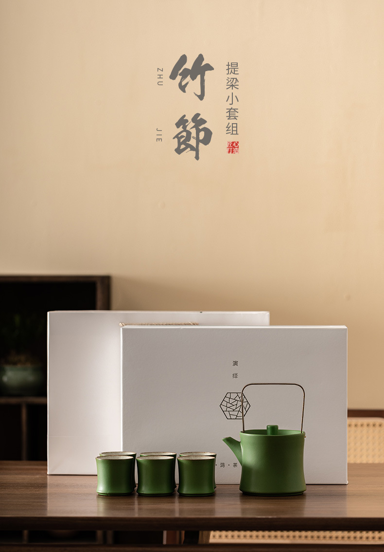 Bộ ấm trà tráng men ngọc trúc một ấm sáu chén Bộ ấm trà gốm sứ chén trà Bộ trà trúc trọn Bộ hộp quà Bộ trà Kung Fu