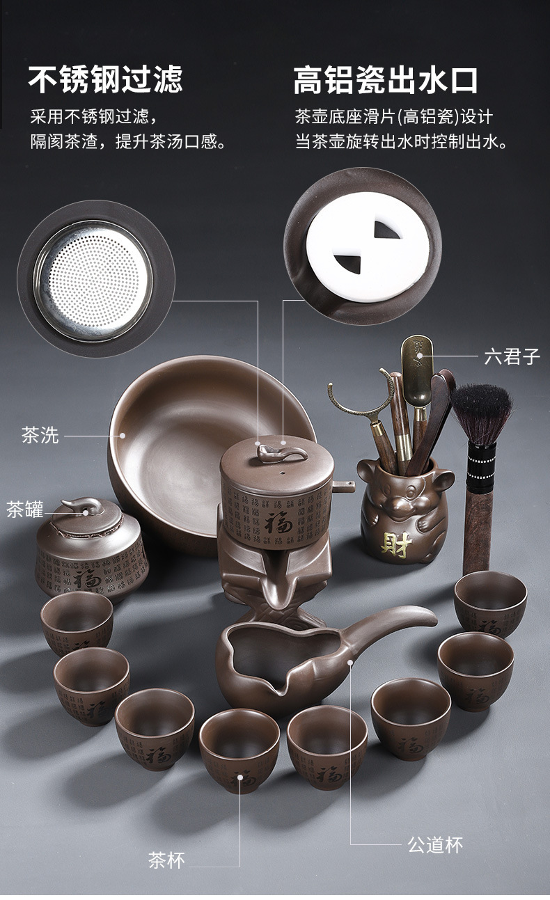 Bộ ấm trà tự động dành cho người lười cát tím ấm trà gia dụng dụng cụ pha trà máy pha trà văn phòng trọn bộ quà lưu niệm