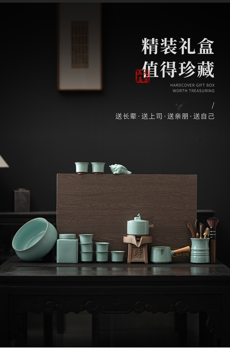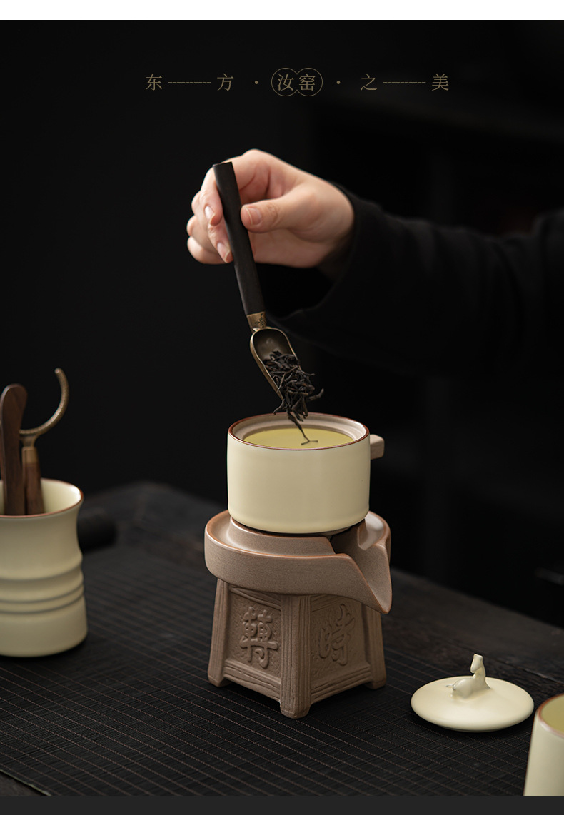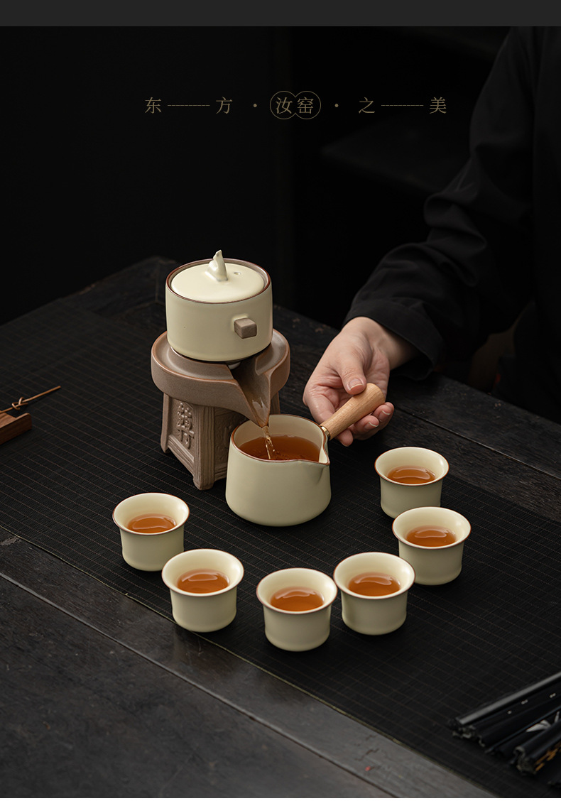 - Bộ ấm trà tự động gốm sứ Ru Kiln ấm trà đá nhỏ gia dụng ấm trà lười pha trà hiện vật Bộ ấm trà Bộ ấm trà