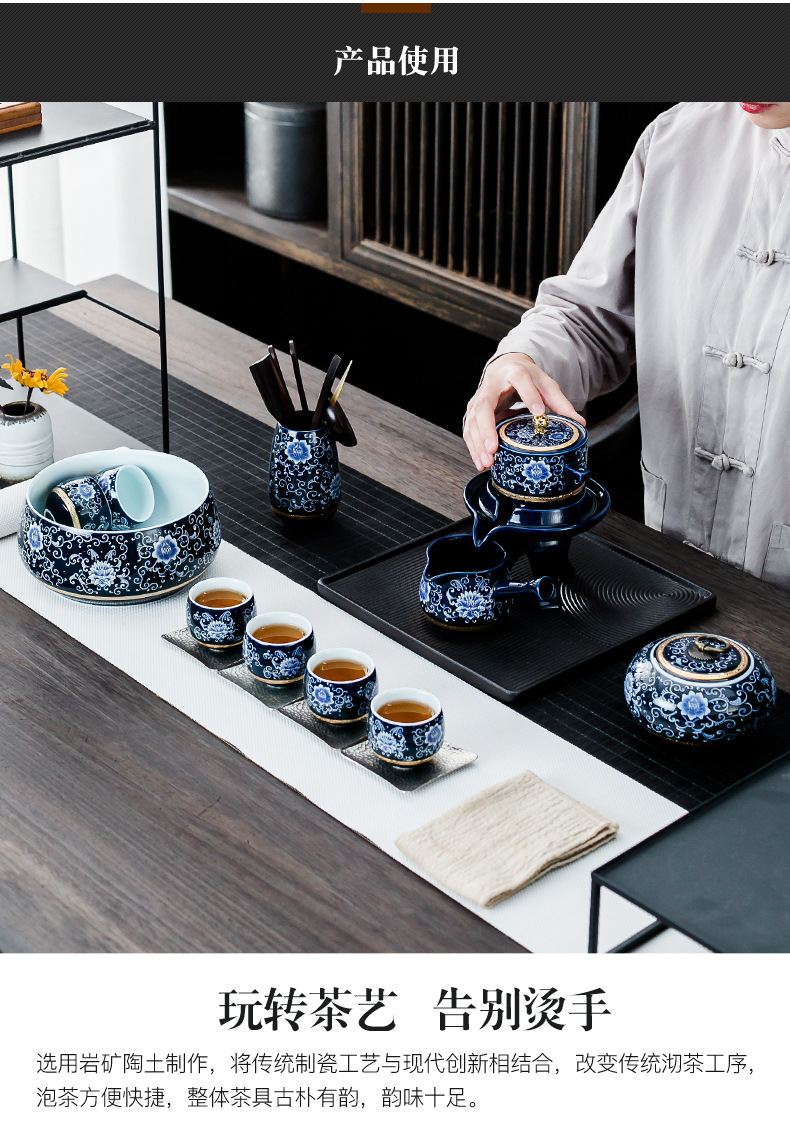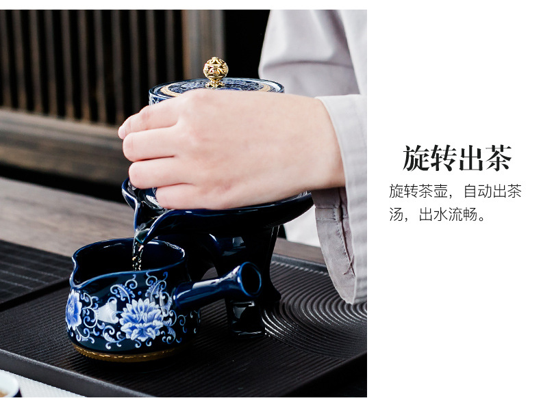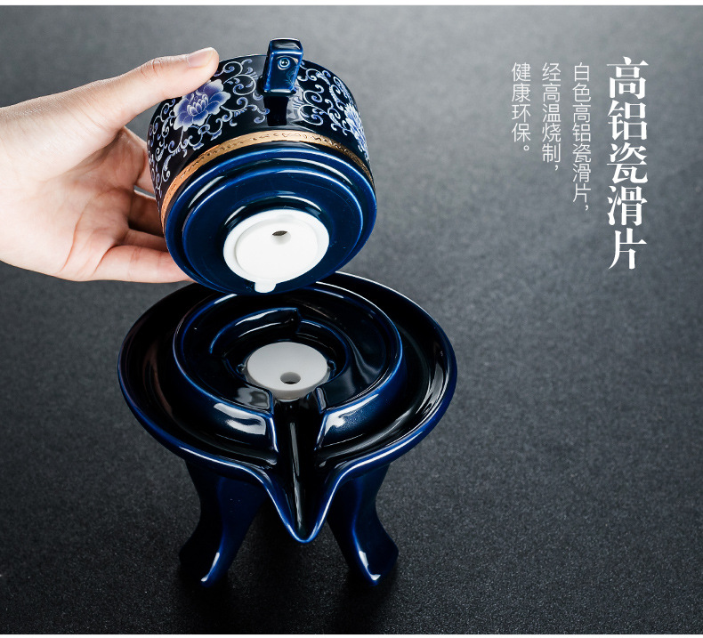 Bộ ấm trà tự động sứ trắng xanh dụng cụ pha trà đá mài chống bỏng cho người lười gia dụng ấm trà gốm sứ cốc trà quà tặng