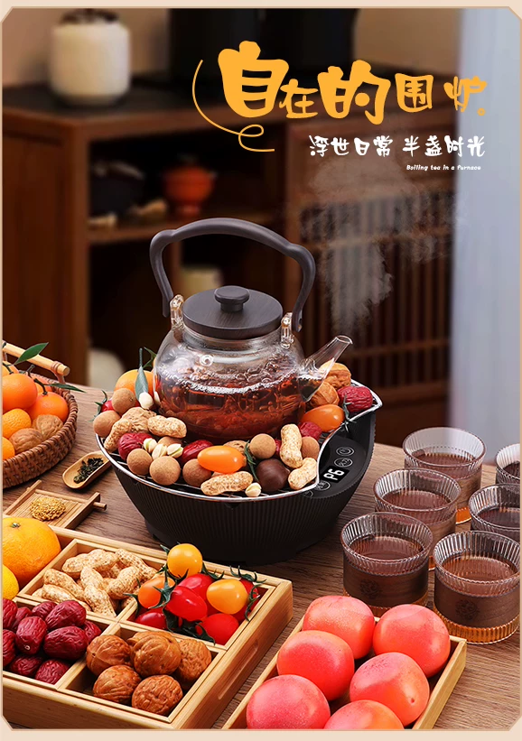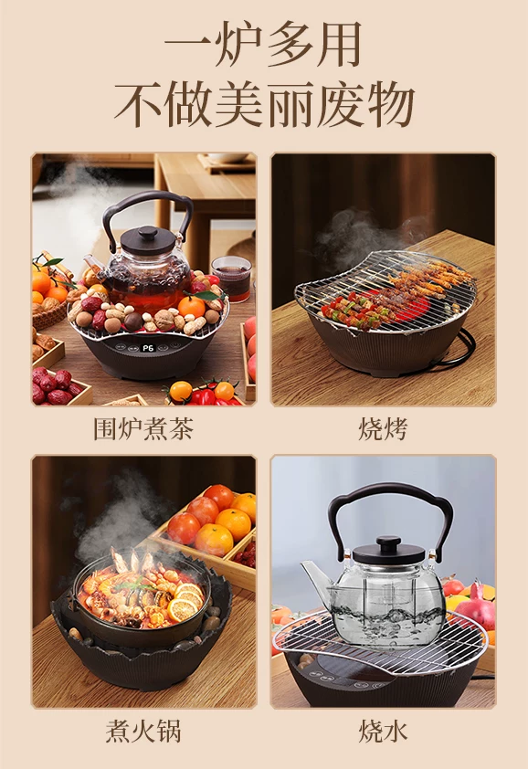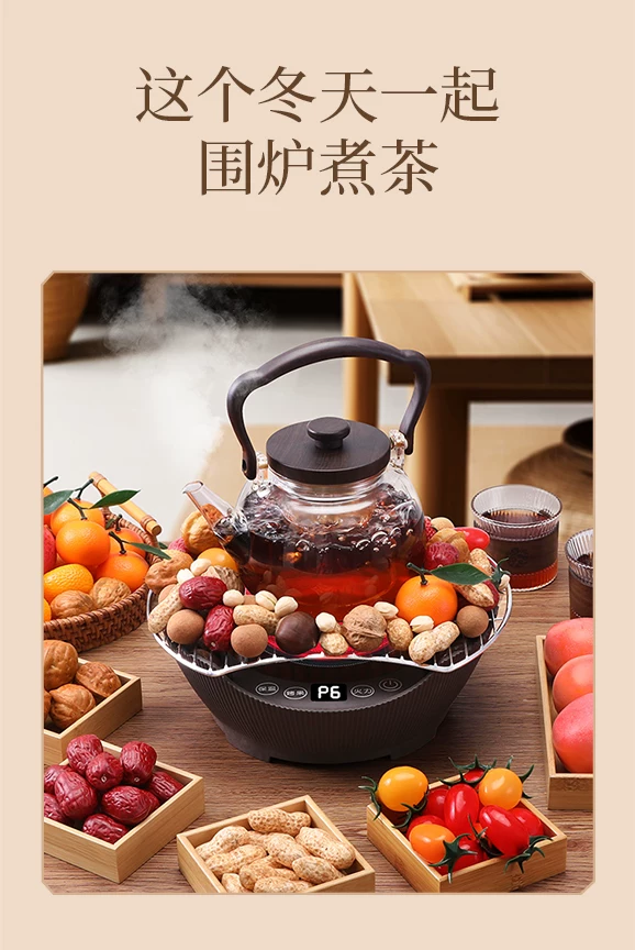Bộ ấm trà và lò đốt củi Mongdio mẫu mới 2024, bếp điện gốm gia dụng mùa đông, bộ đầy đủ