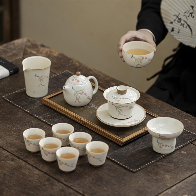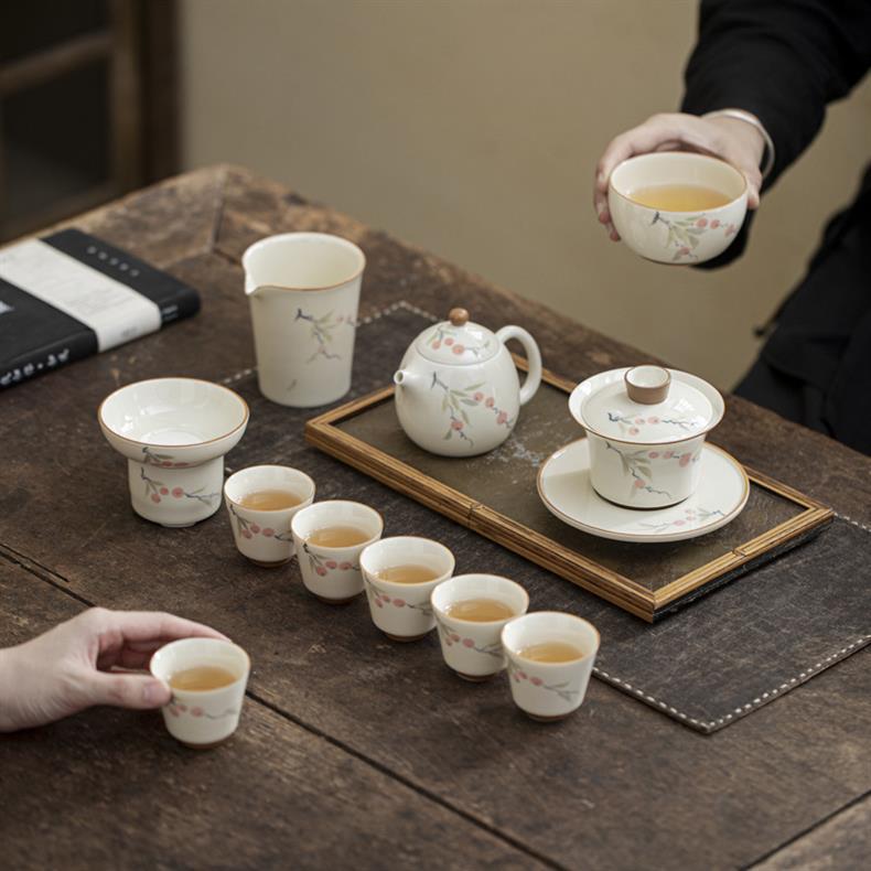 - Bộ ấm trà vẽ tay tráng men có nắp ấm trà hộp quà cao cấp dụng cụ trà Kung Fu gia dụng bằng gốm sứ lưu niệm