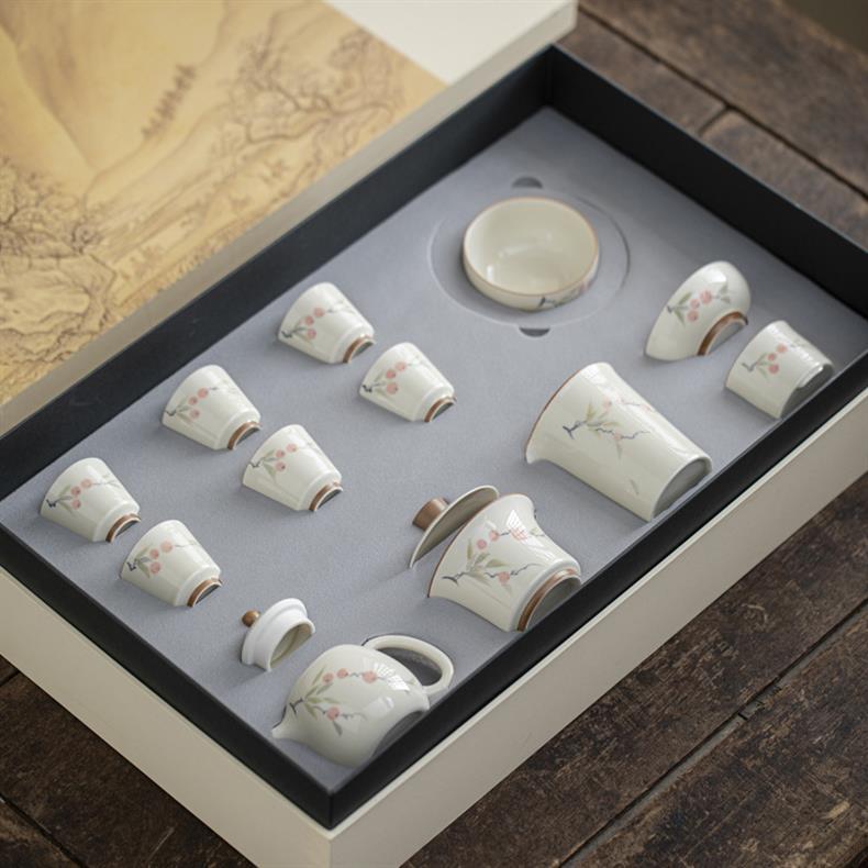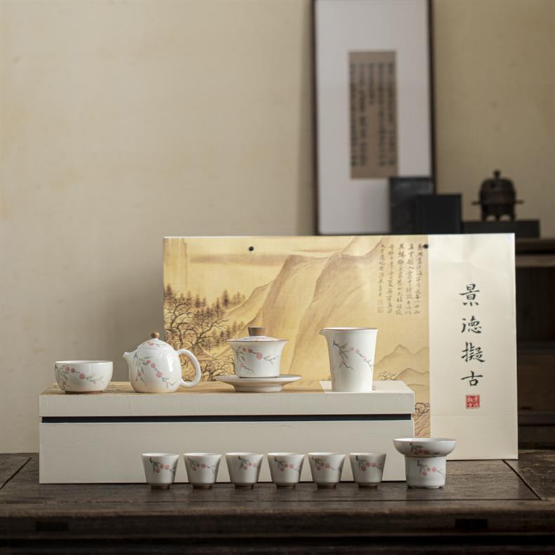 Bộ ấm trà vẽ tay tráng men có nắp ấm trà hộp quà cao cấp dụng cụ trà Kung Fu gia dụng bằng gốm sứ lưu niệm
