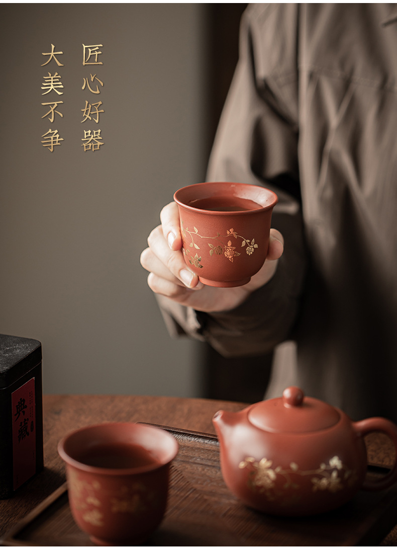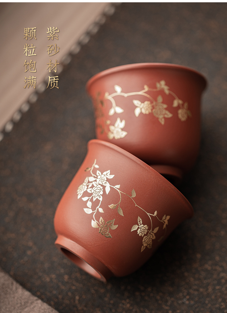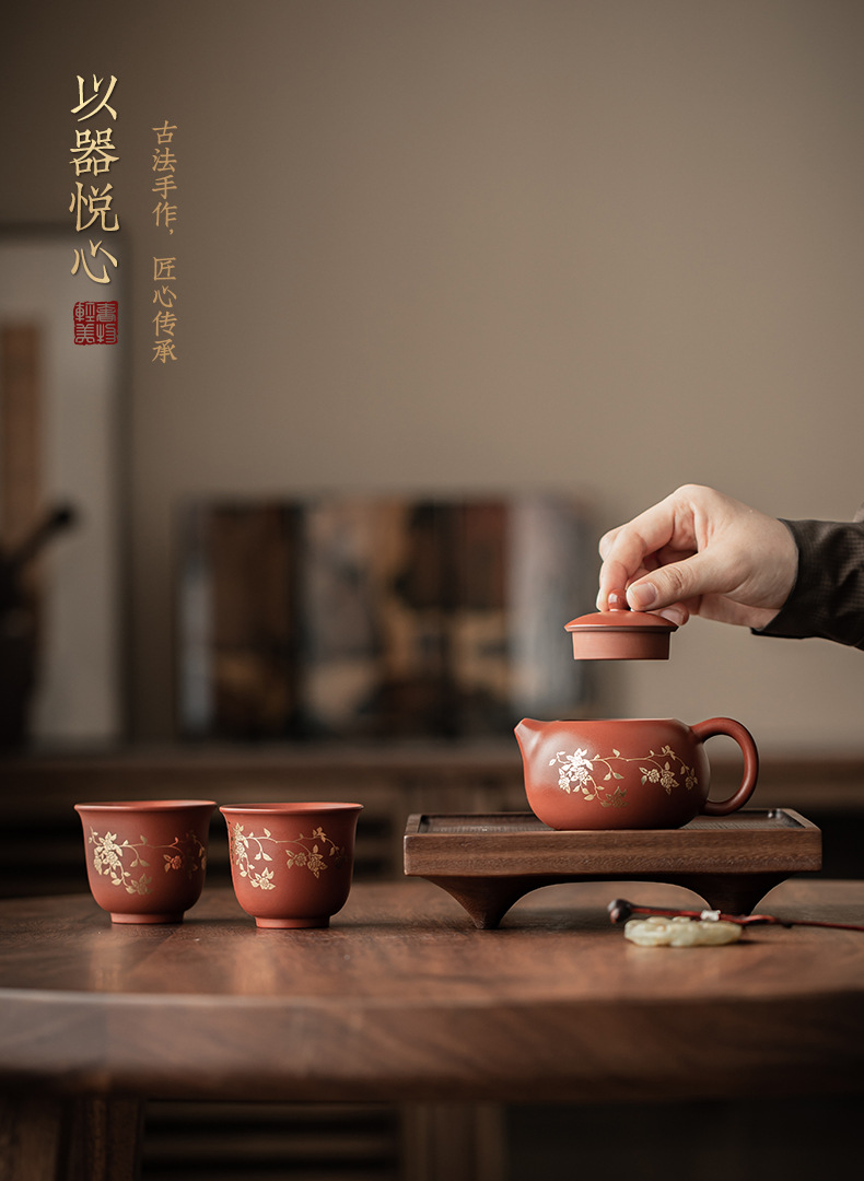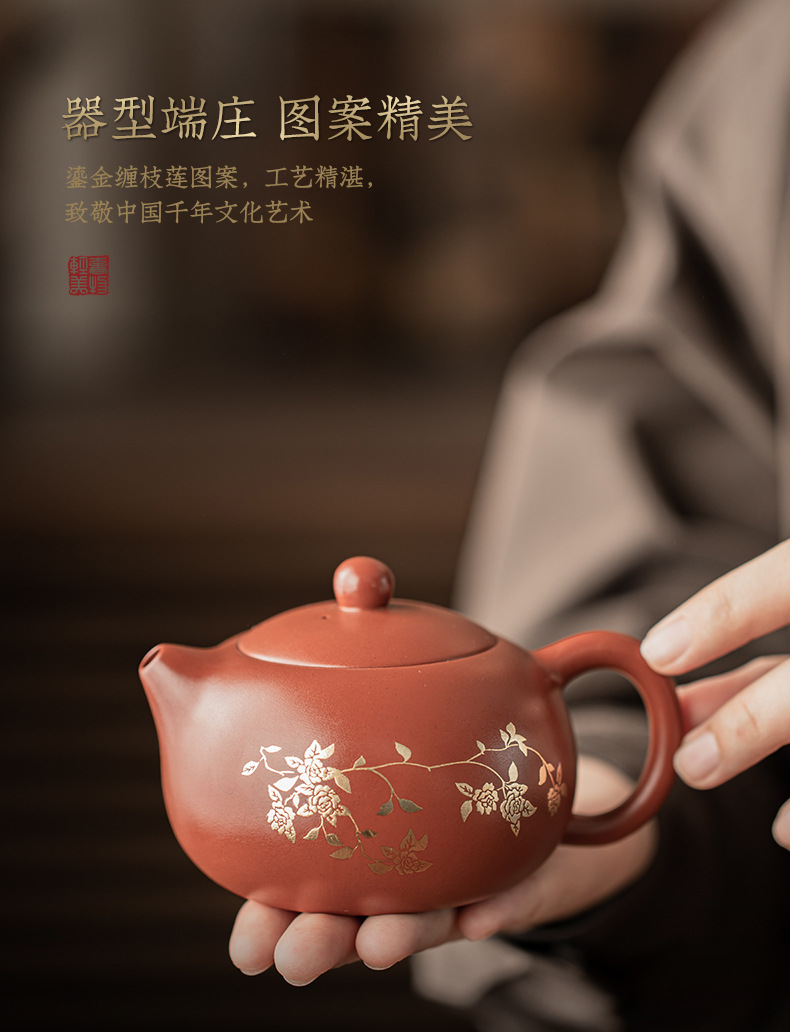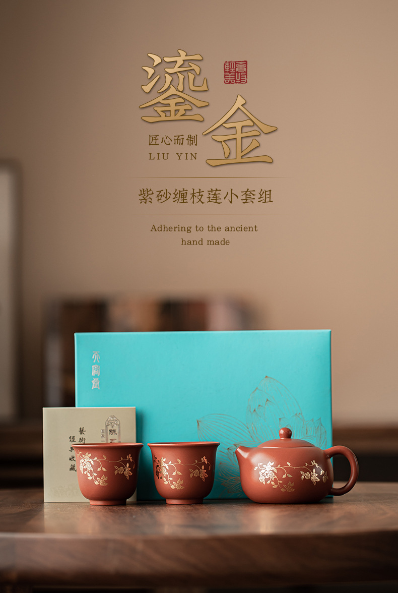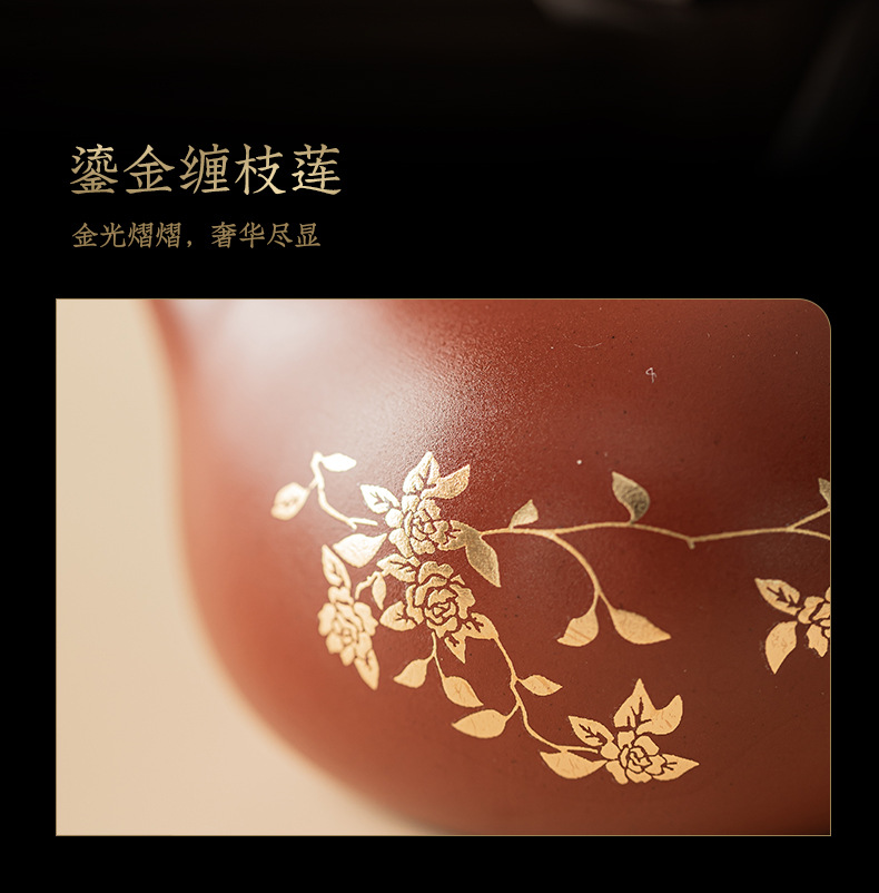 Bộ ấm trà Xi Shi hoa sen mạ vàng tím bộ ấm pha trà cổ điển một ấm hai cốc bộ trà quà tặng gia dụng hộp quà