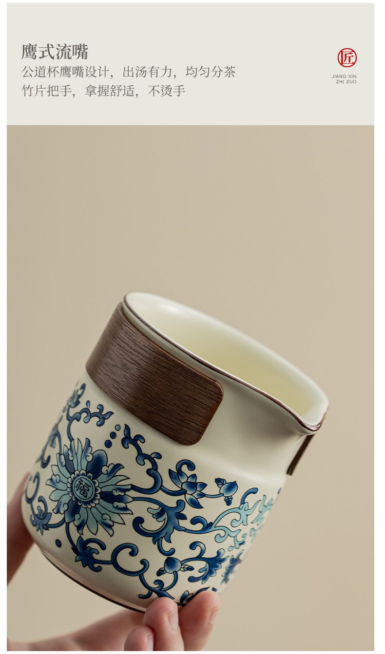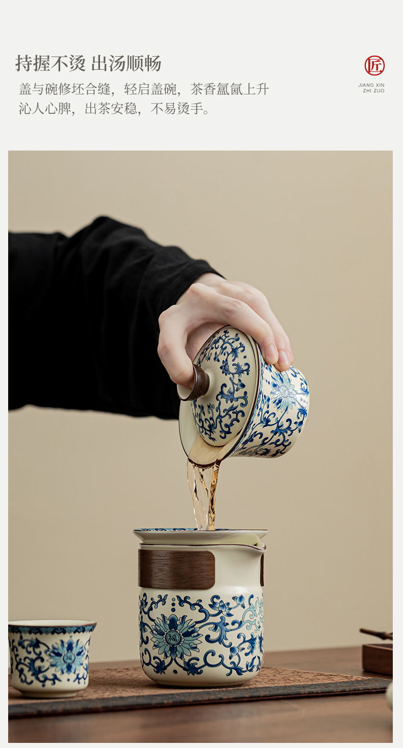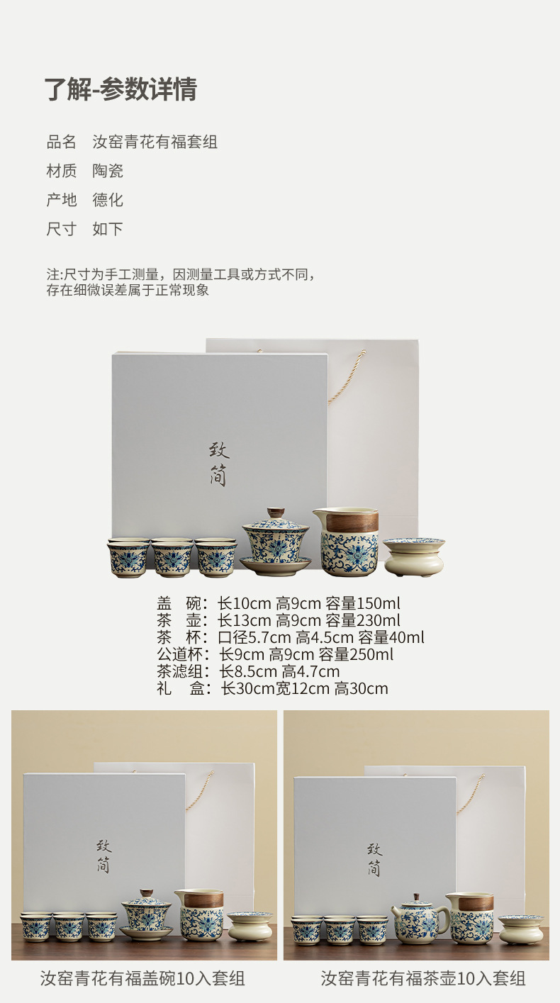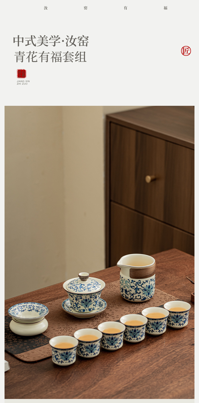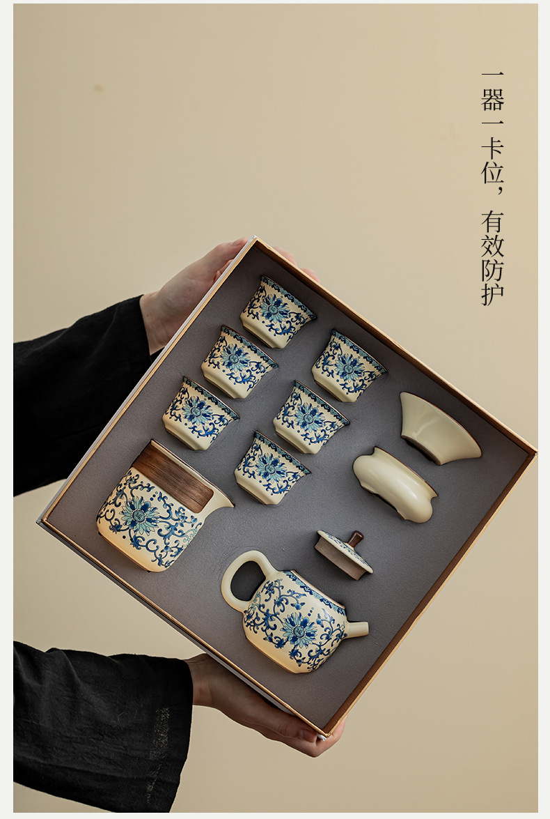 - Bộ ấm trà Youfu màu xanh và trắng Ru Kiln Bộ ấm trà Trung Quốc gia dụng Bộ ấm trà có thể nâng cốc trà Bộ ấm trà Kung Fu