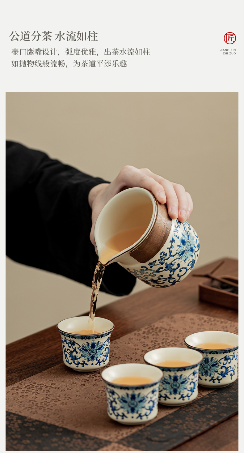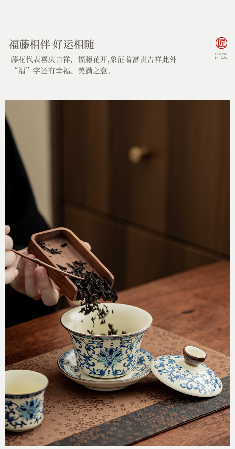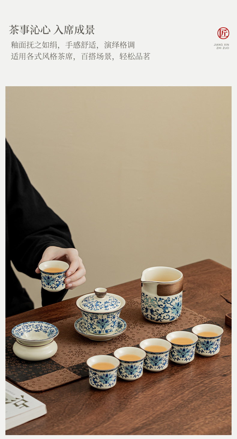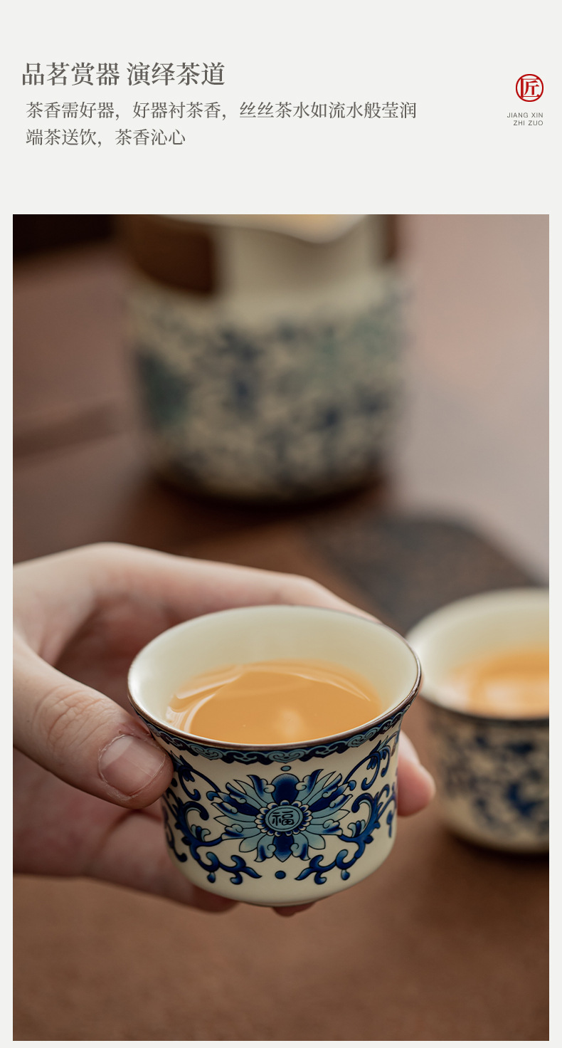 - Bộ ấm trà Youfu màu xanh và trắng Ru Kiln Bộ ấm trà Trung Quốc gia dụng Bộ ấm trà có thể nâng cốc trà Bộ ấm trà Kung Fu
