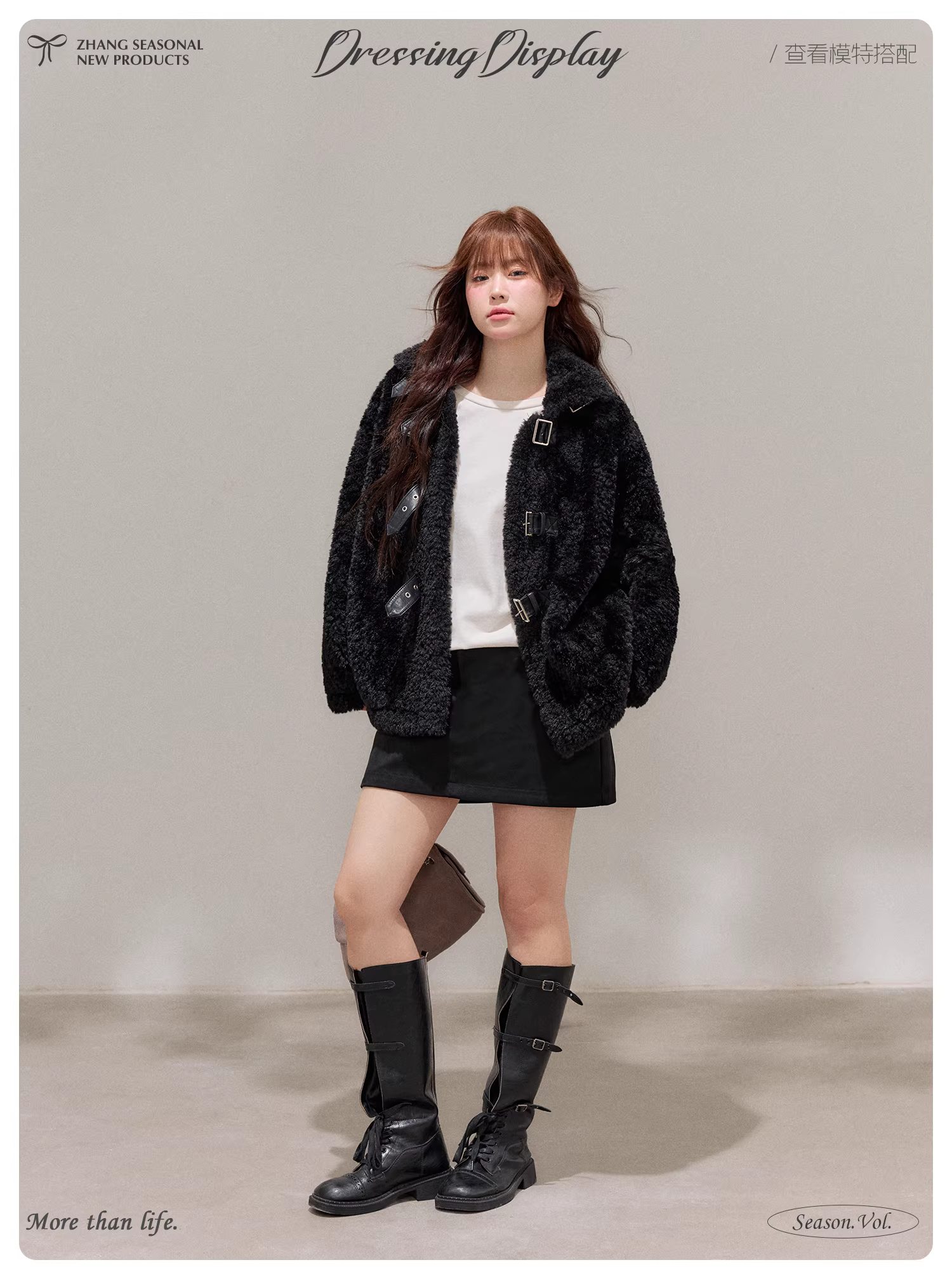 Bộ áo khoác và váy len cừu màu đen thanh lịch, dáng ôm, mùa đông dành cho phụ nữ cỡ lớn, dành cho các cô gái mũm mĩm.