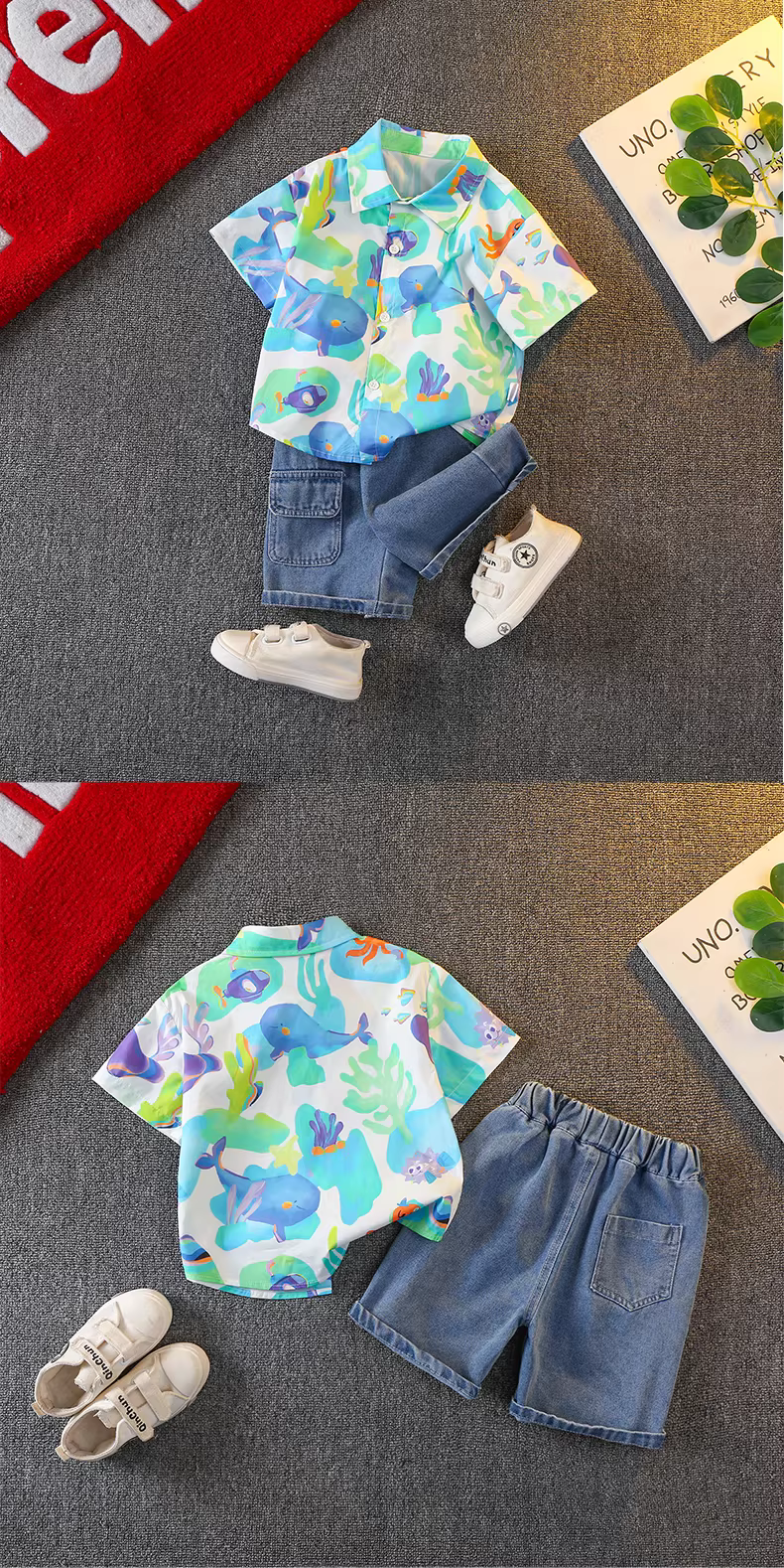 - Bộ áo thun hè bé trai 2025 kiểu mới, áo thun ngắn tay thời trang trẻ em, phong cách trẻ trung, chất liệu mỏng nhẹ