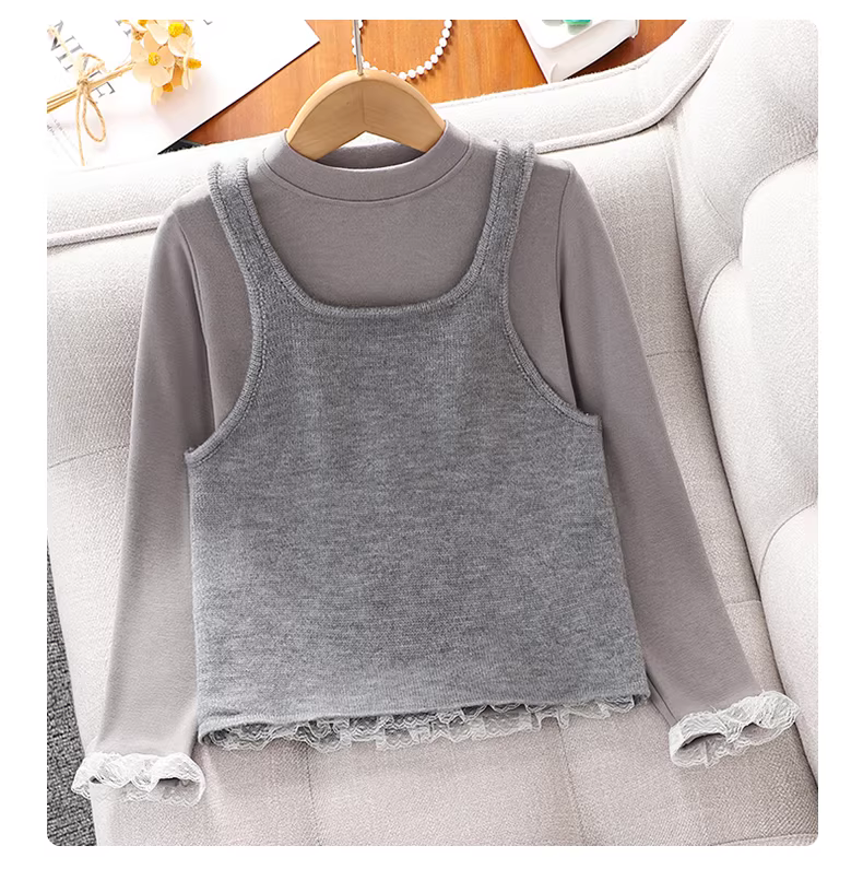 - Bộ áo vest nữ xuân thu, áo lót ren viền mới năm 2025, áo thun nữ có dây, trang phục mùa xuân.
