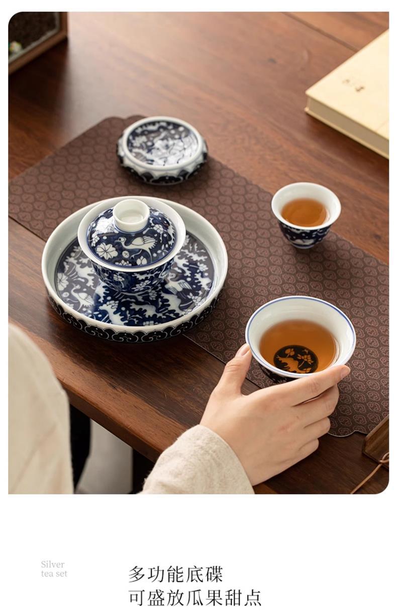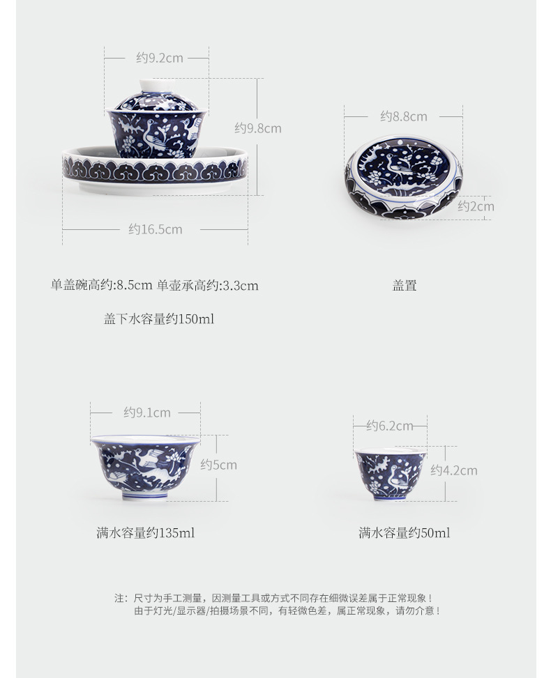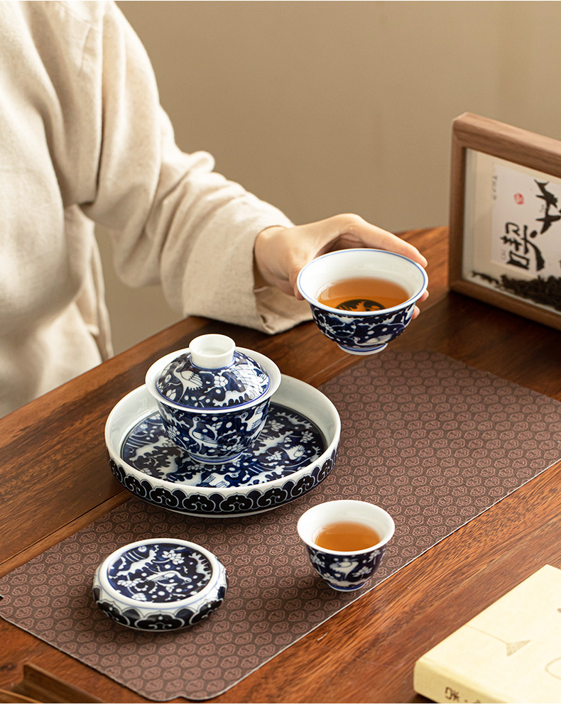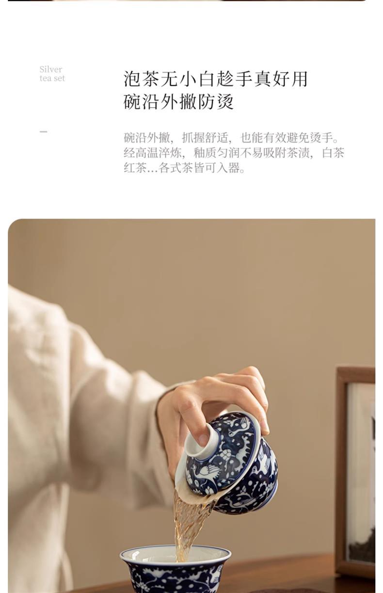 - Bộ bát có nắp màu xanh và trắng làm thủ công Jingdezhen Bộ đồ trà gốm sứ dụng cụ pha trà cốc gia dụng cốc chủ nhân