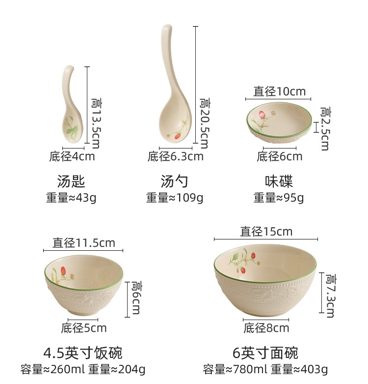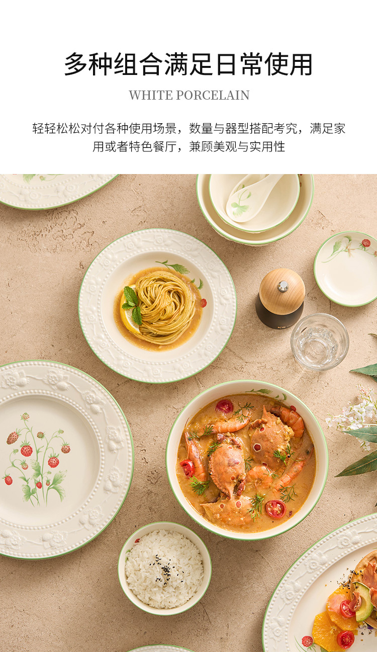 - Bộ bát đĩa dâu tây chạm nổi, bát đĩa gia dụng, bộ bát đĩa gốm sứ giá trị cao, bộ bát đĩa tân gia, bộ đồ ăn quà tặng nhà mới
