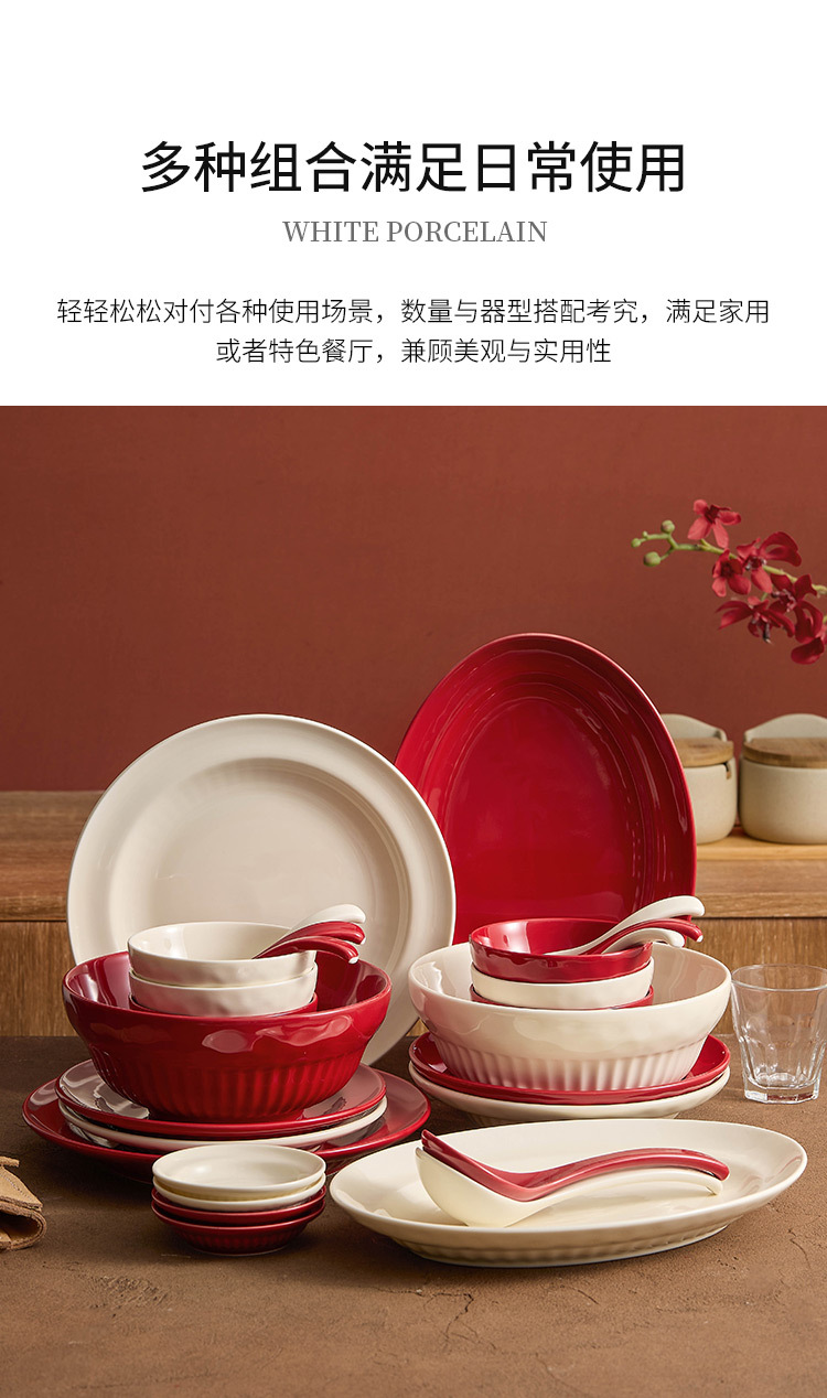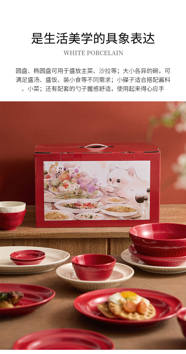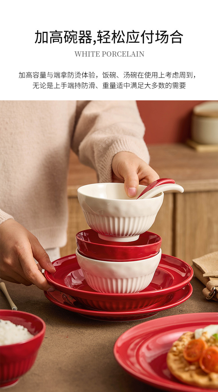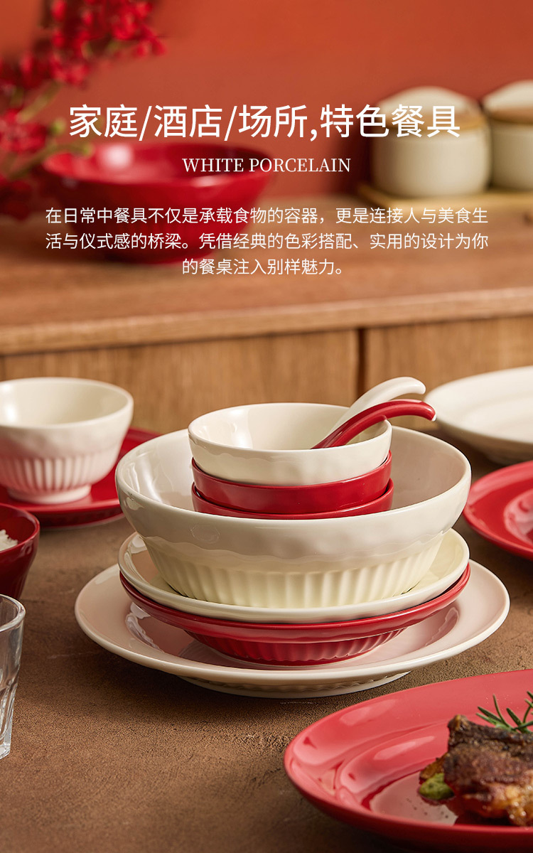Bộ bát đĩa lễ hội, bát đĩa gia dụng sáng tạo tân gia, nhà mới, bộ đồ ăn quà tặng, bát đĩa giá trị cao, bát đĩa súp