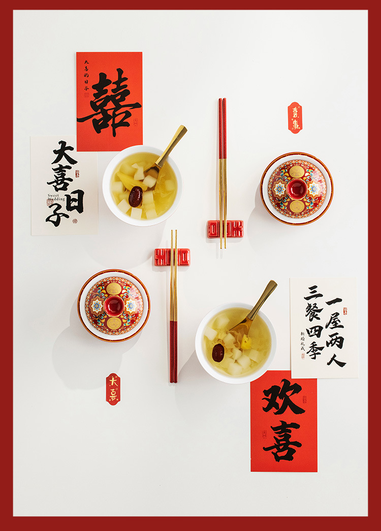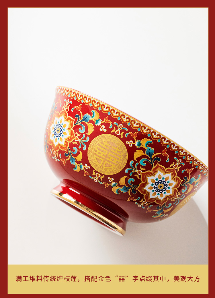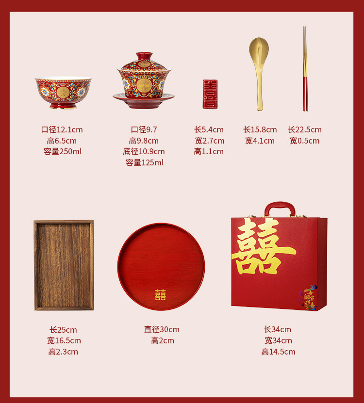 - Bộ bát đĩa và đũa tân hôn tráng men Bộ trà hồi môn Trung Quốc bát có nắp màu đỏ thay đổi cốc trà hạnh phúc quà cưới