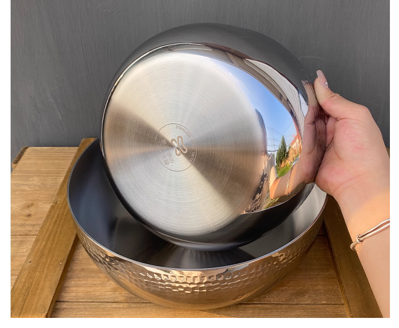 - Bộ bát inox 304 chạm khắc hoa văn, dày dặn dùng trong gia đình, bát nhà bếp để đánh trứng, nhào bột, rửa rau, dùng làm bát lẩu và súp.
