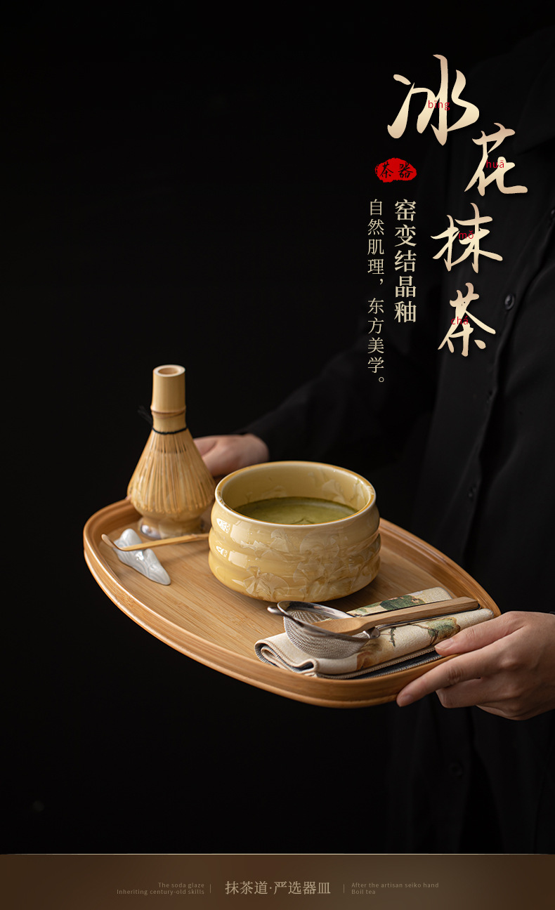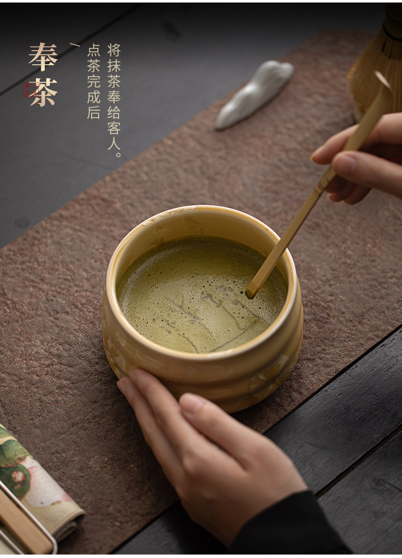 - Bộ bát matcha gốm tám món với men nung trong lò, dụng cụ đánh bọt và khuấy trà thời nhà Tống, Bai Benli.