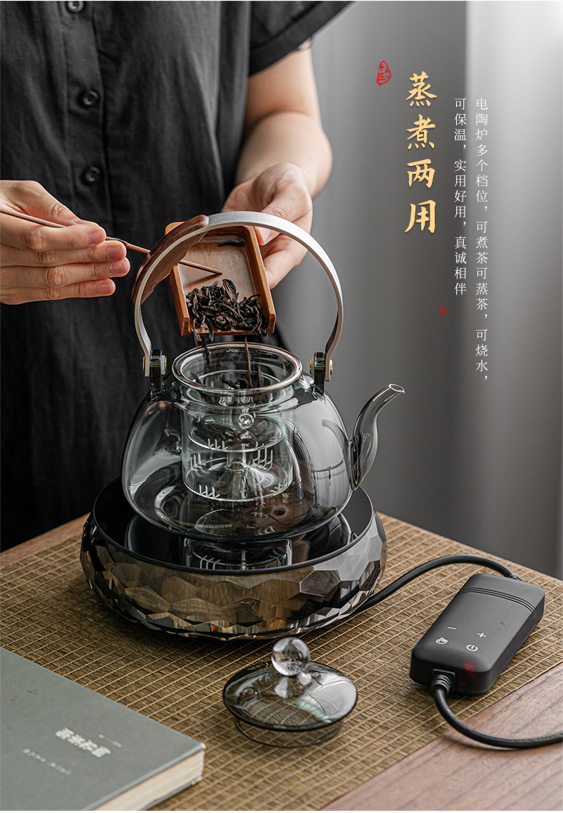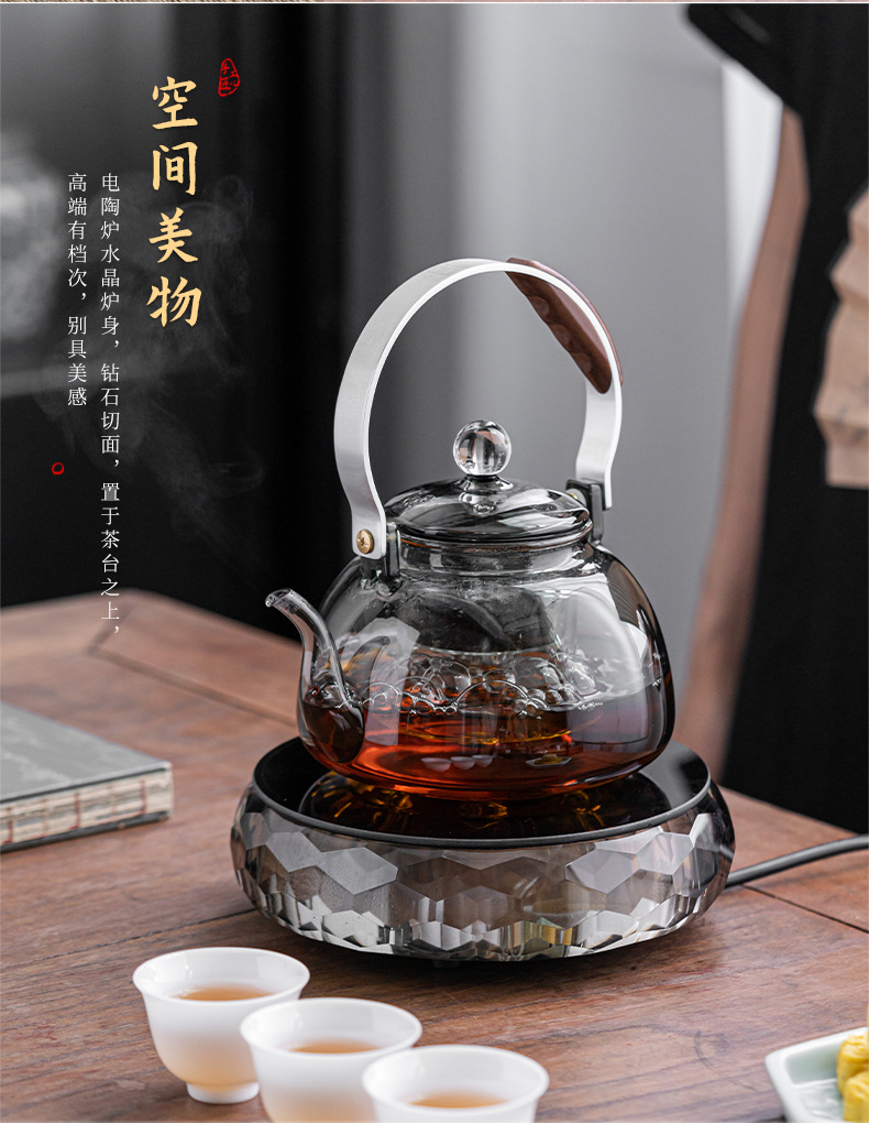 - Bộ bếp nấu trà pha lê bếp gốm điện ấm thủy tinh chịu nhiệt cao Ấm đun nước gia dụng dụng cụ nấu trà không ồn bếp nấu trà
