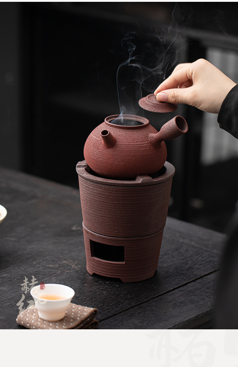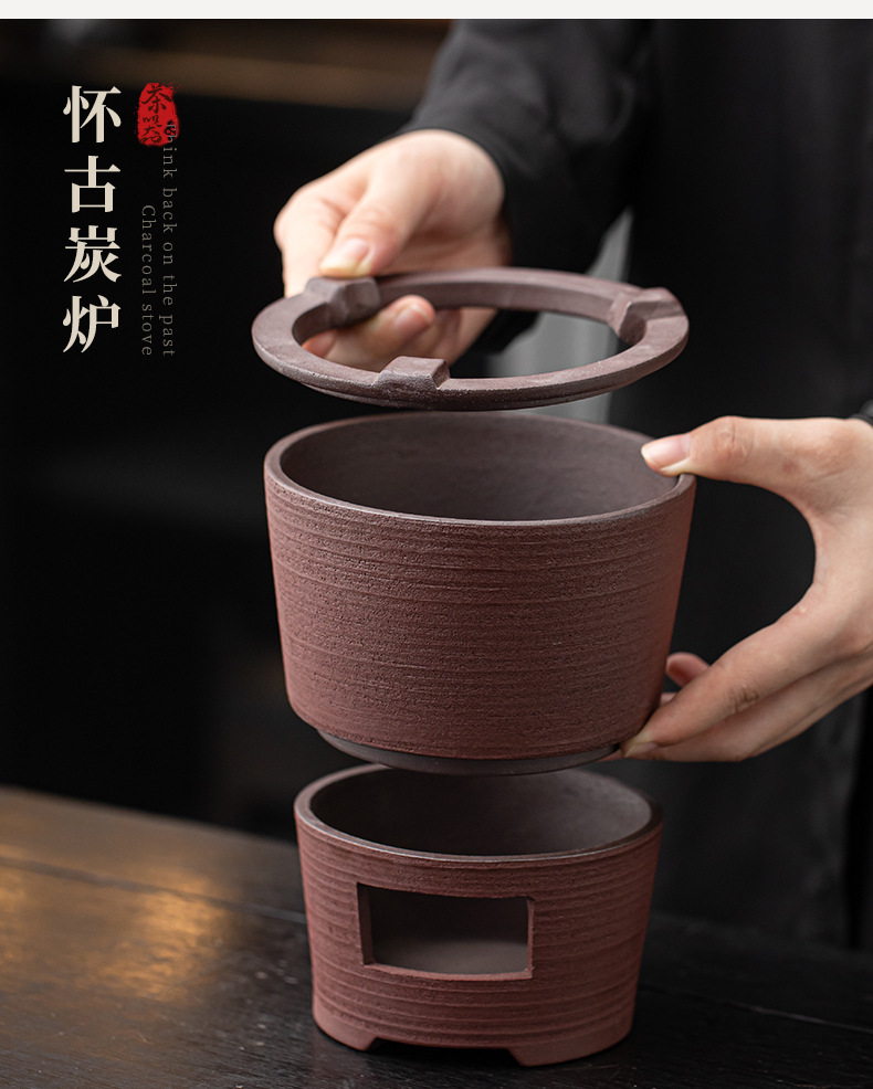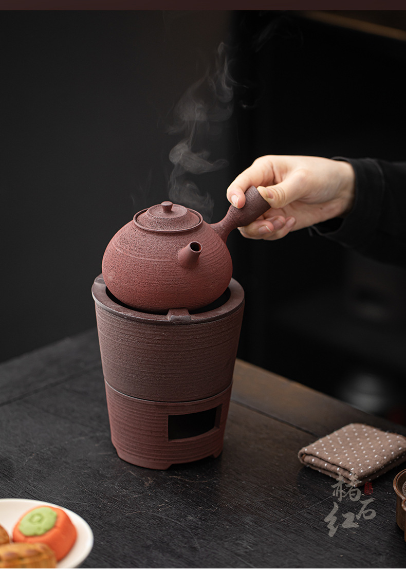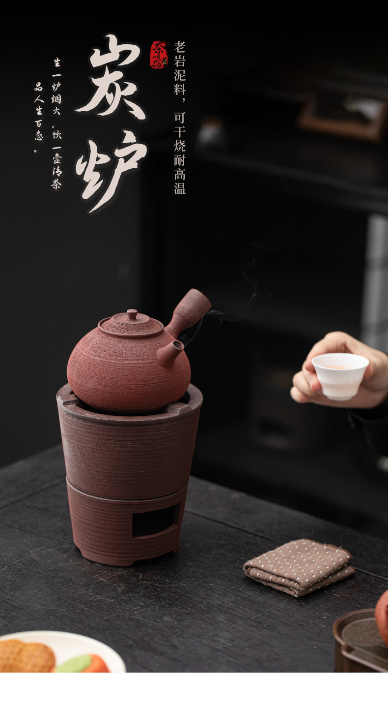- Bộ bếp than bùn đá cũ, bếp bọc gốm cổ điển, dụng cụ pha trà kung fu ngoài trời gia dụng, bếp đun nước, tay cầm bên ấm trà
