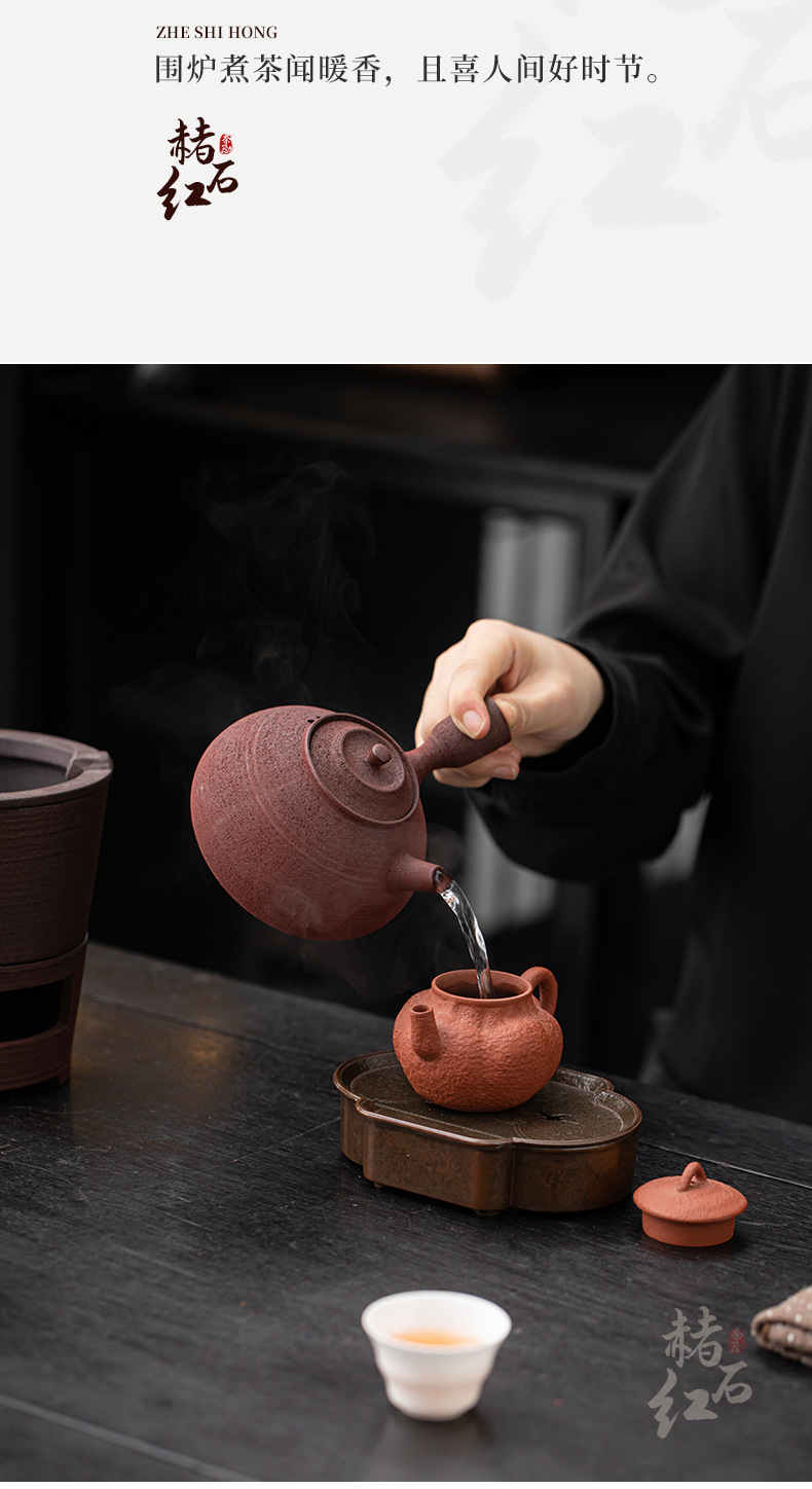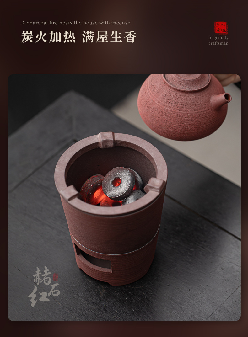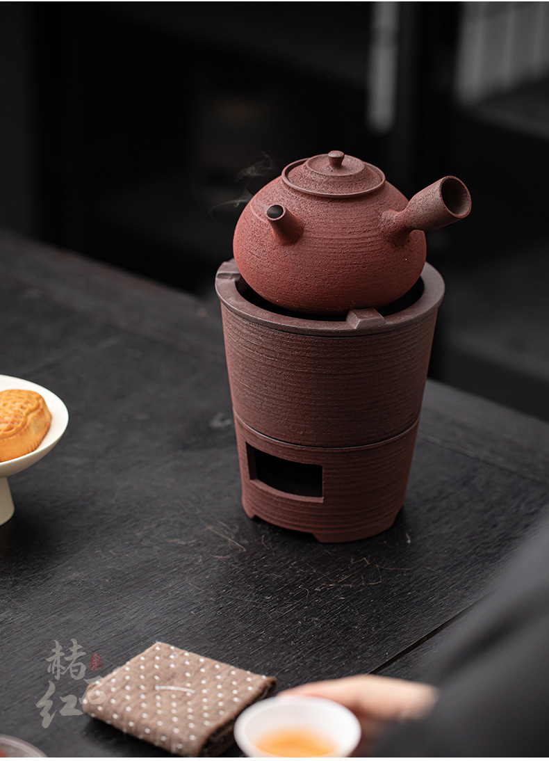 - Bộ bếp than bùn đá cũ, bếp bọc gốm cổ điển, dụng cụ pha trà kung fu ngoài trời gia dụng, bếp đun nước, tay cầm bên ấm trà