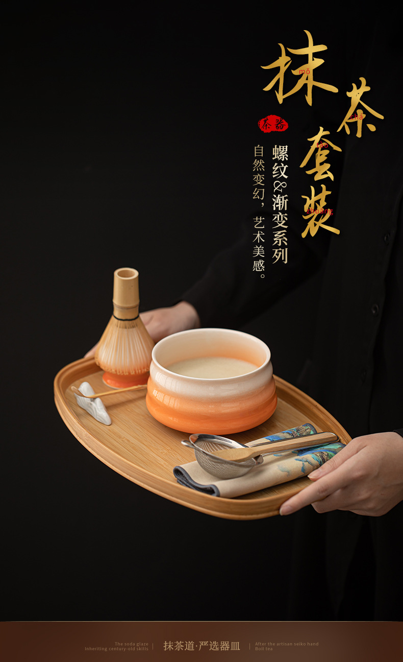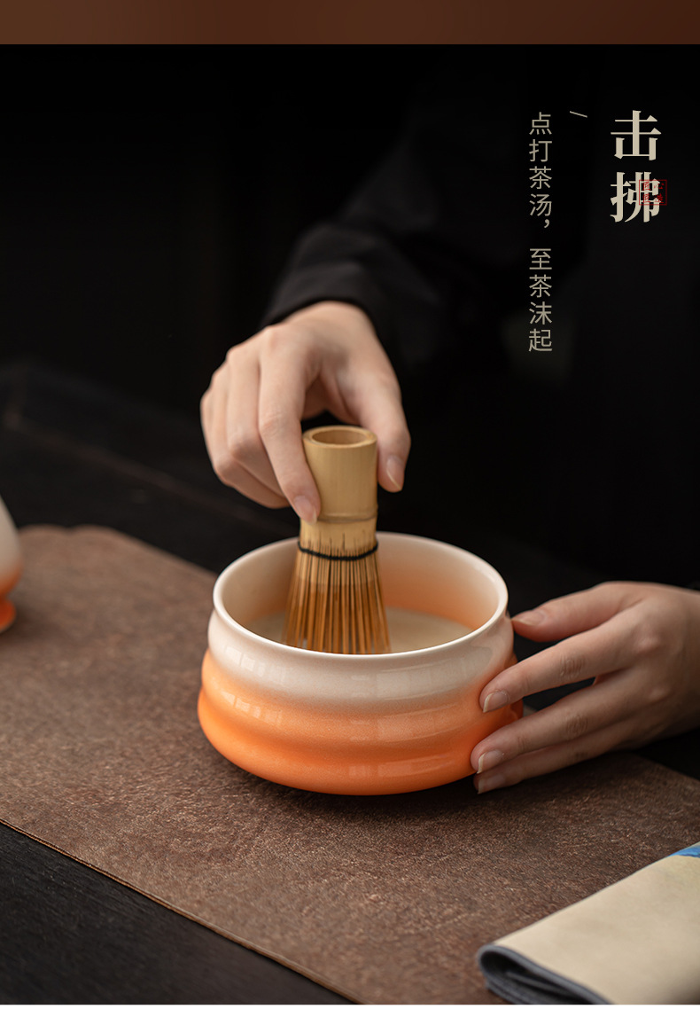 - Bộ bốn mảnh matcha có ren, gốm sứ gradient, bình matcha kiểu Nhật, bát trà, bình trà Baibenli, trà thời Tống