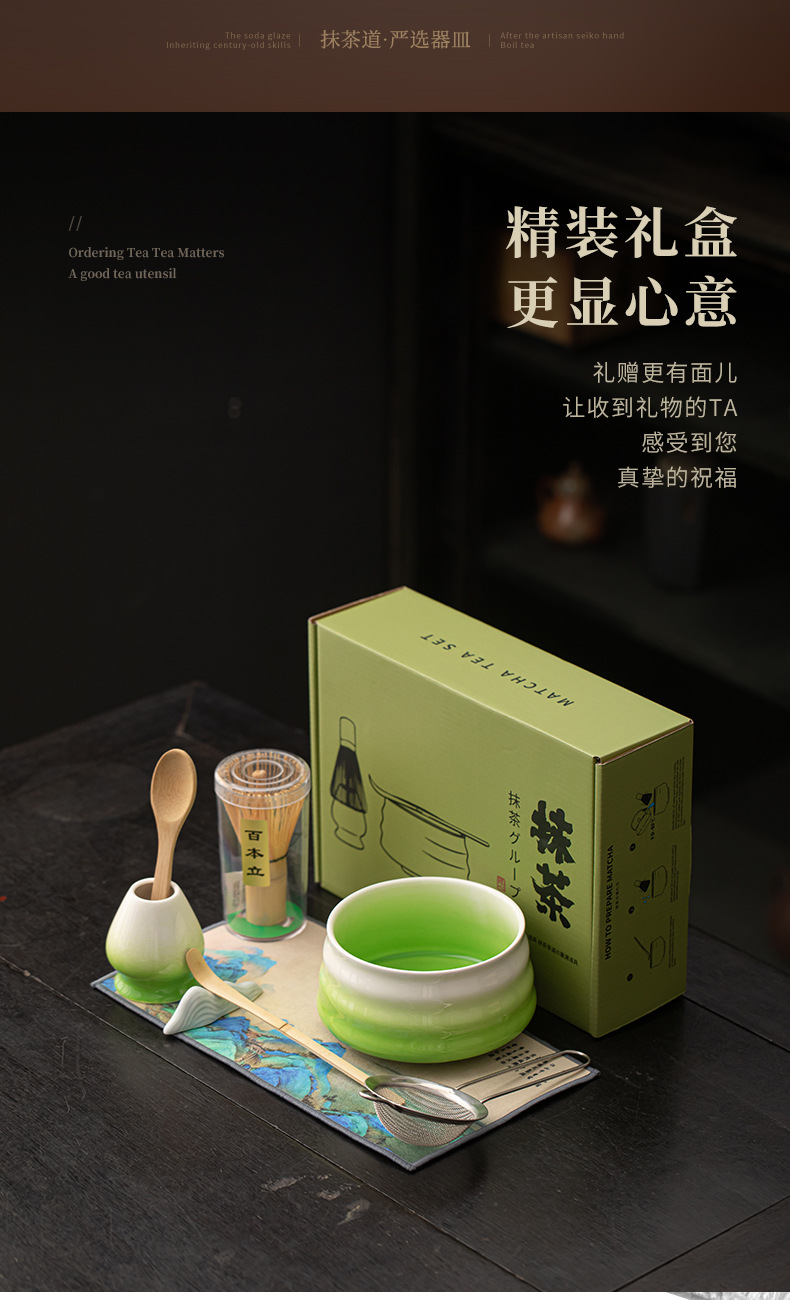 Bộ bốn mảnh matcha có ren, gốm sứ gradient, bình matcha kiểu Nhật, bát trà, bình trà Baibenli, trà thời Tống