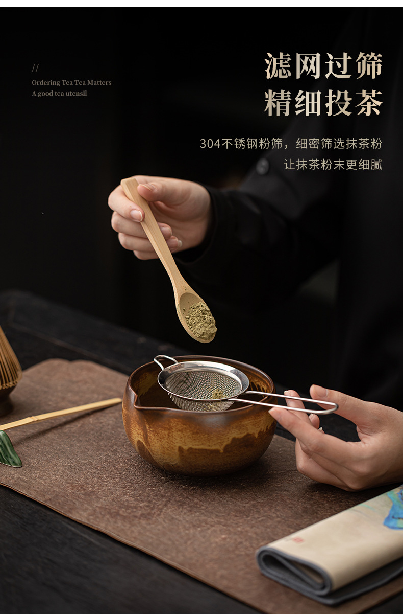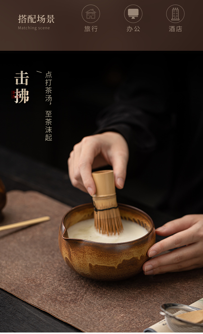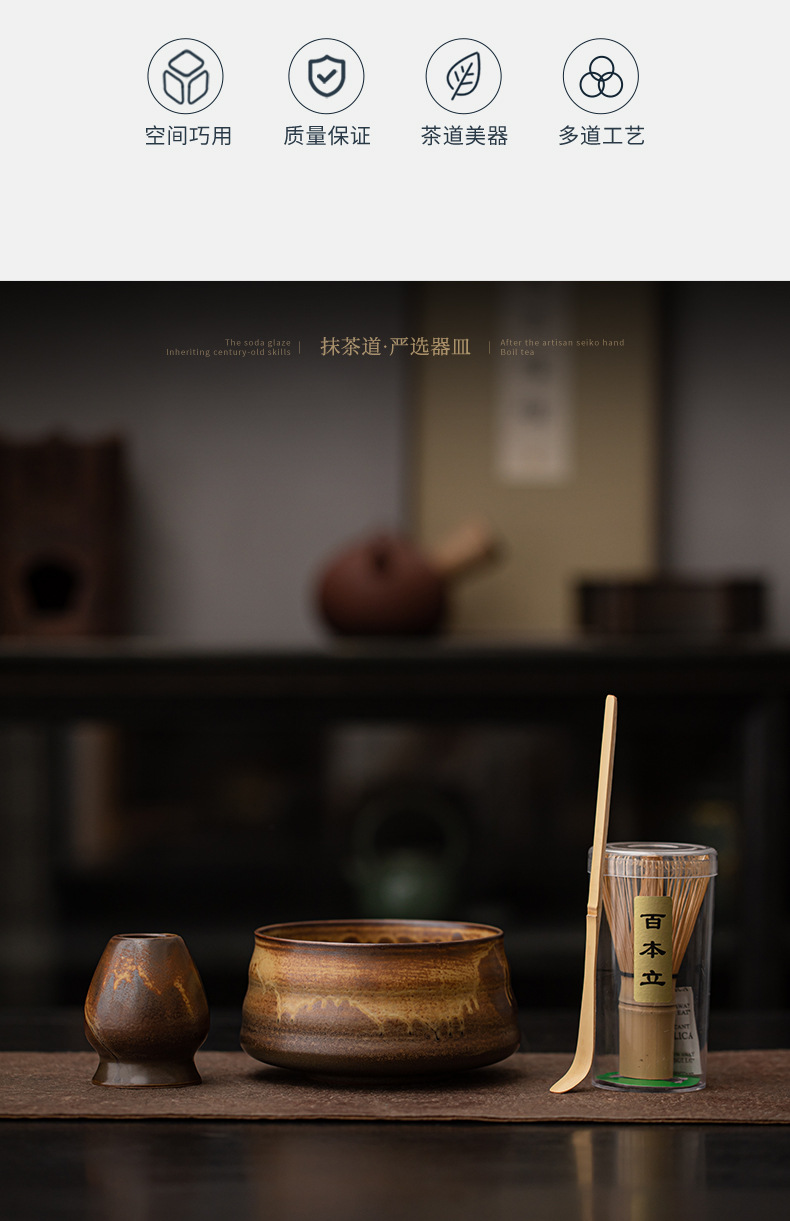 - Bộ bốn mảnh matcha lò nung cổ điển, đồ dùng pha trà, trà Baixi, dụng cụ matcha, bát trà, bình trà, bàn chải trà đứng