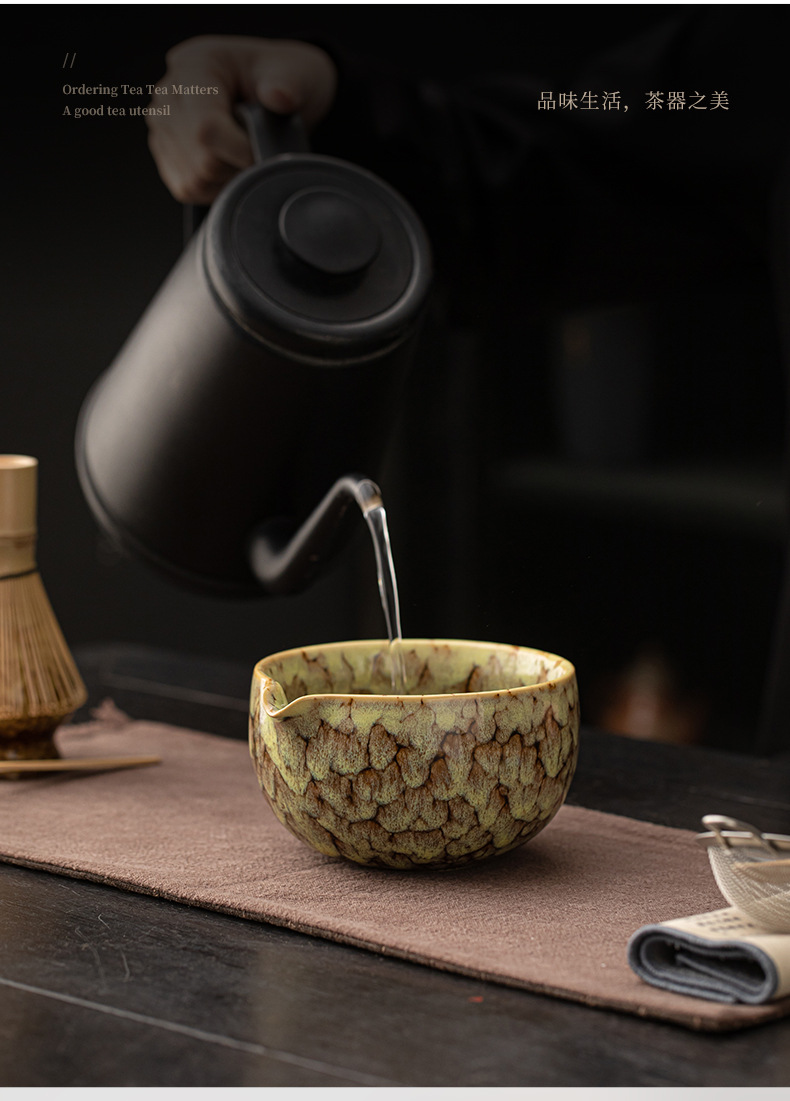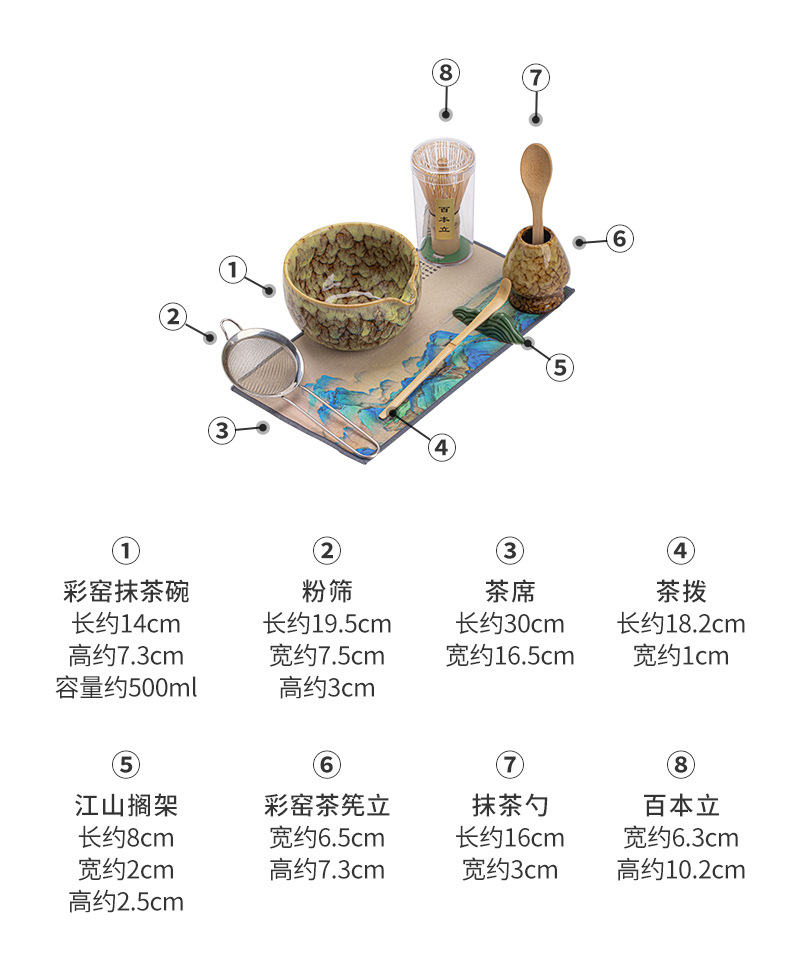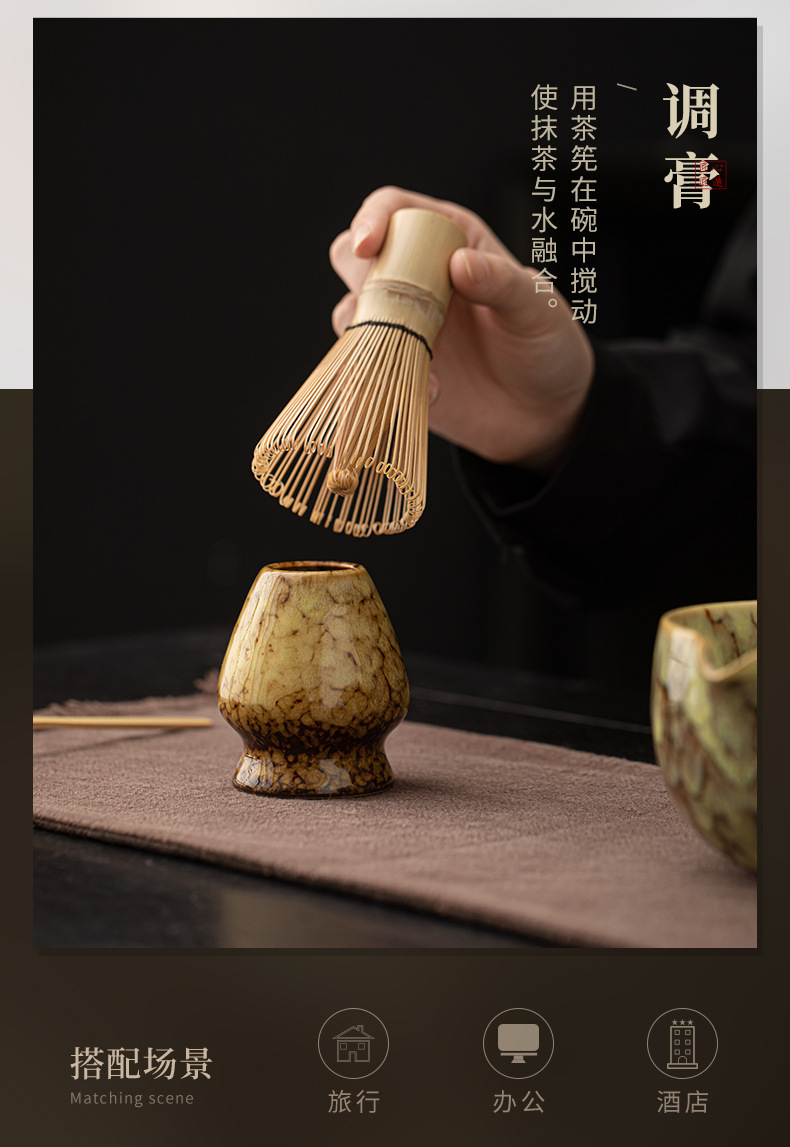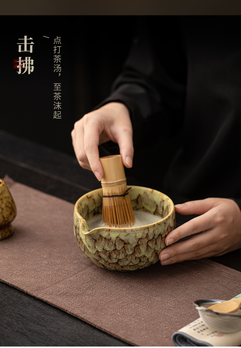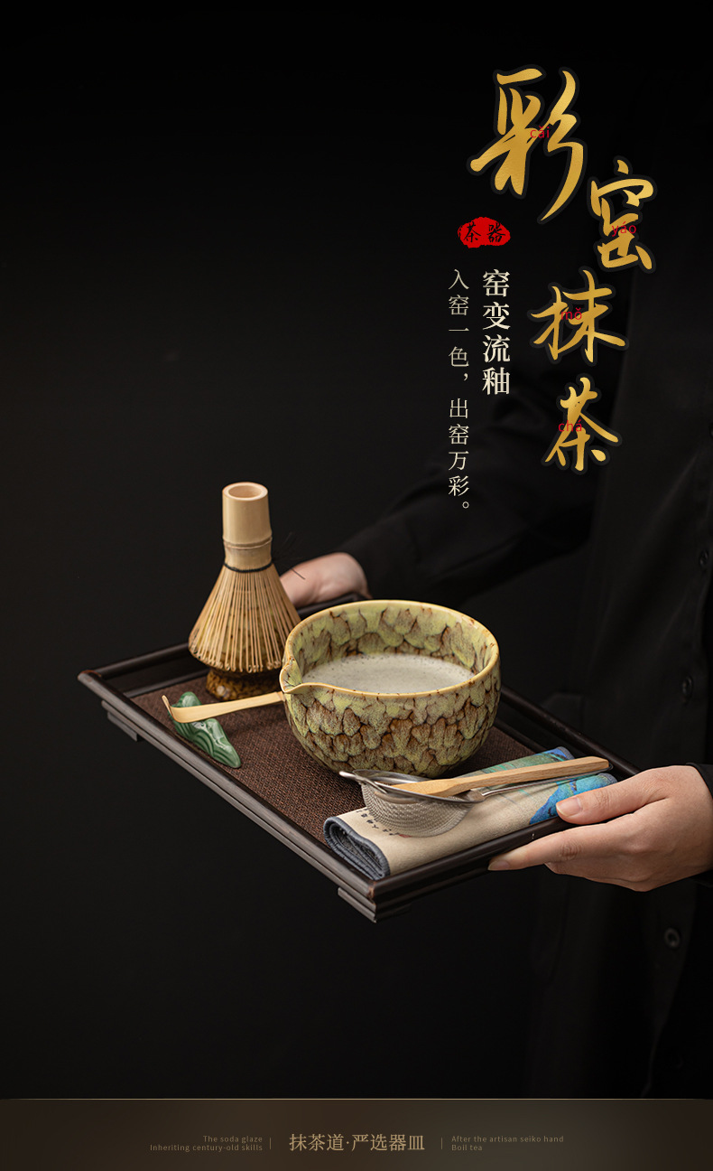 - Bộ bốn mảnh Matcha lò nung màu sáng tạo thay đổi dòng chảy men gốm sứ phụ kiện trà bọt khuấy điểm trà bình trà bát trà đứng