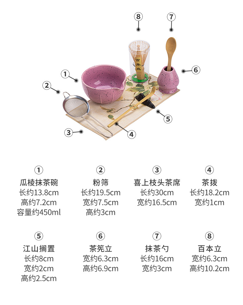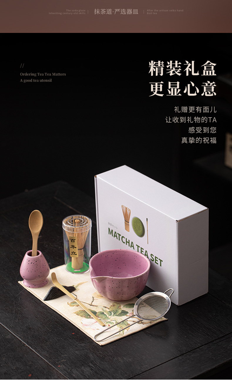 - Bộ bốn món Matcha chấm mực tím thơm bằng sứ bát trà Matcha chén trà Baibenli Matcha chén trà đứng