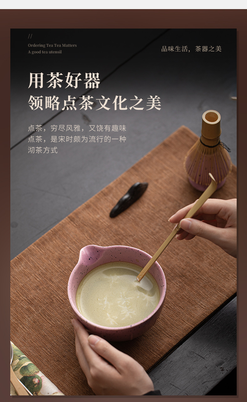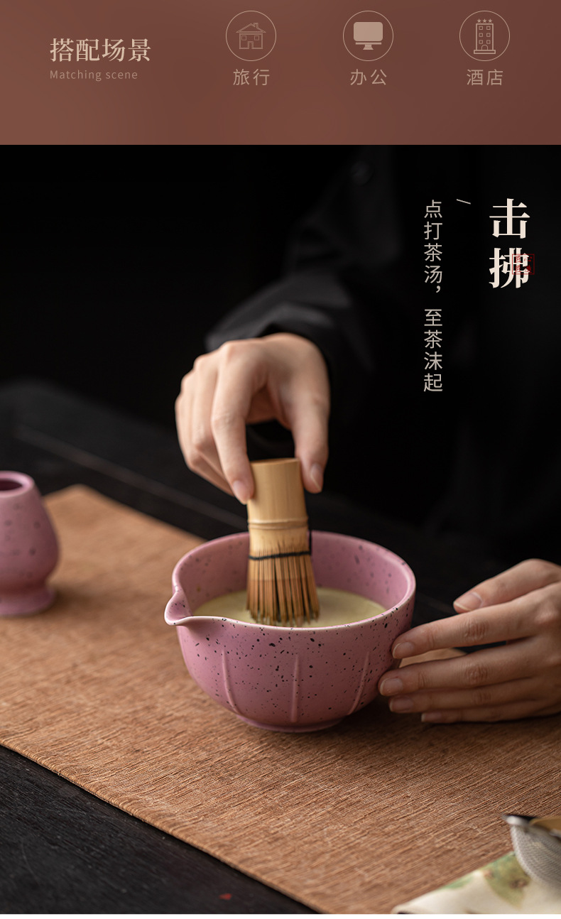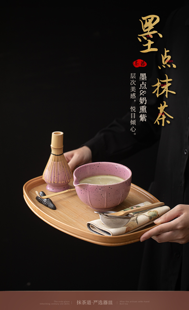 Bộ bốn món Matcha chấm mực tím thơm bằng sứ bát trà Matcha chén trà Baibenli Matcha chén trà đứng