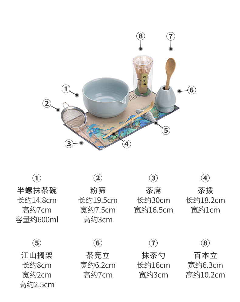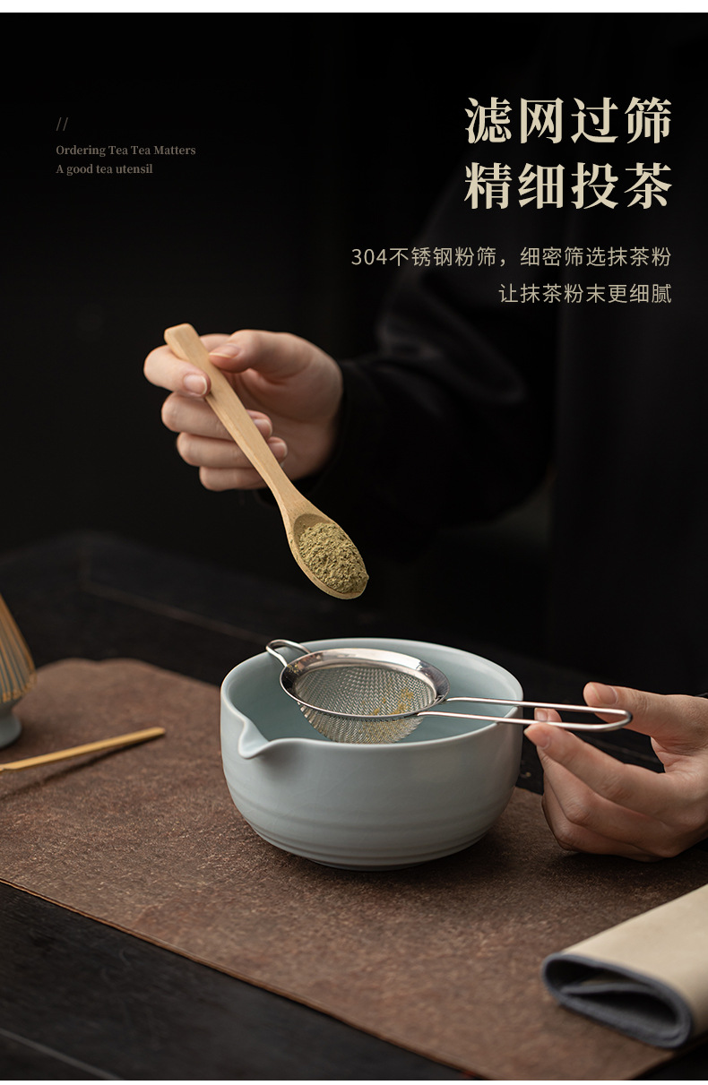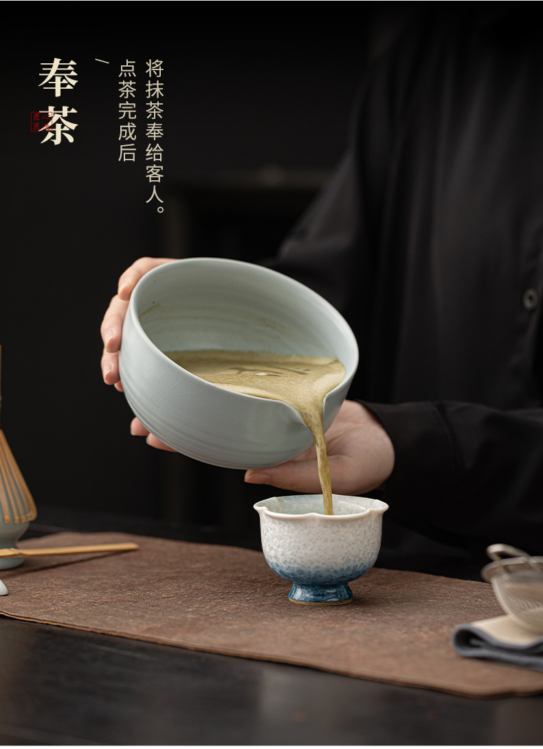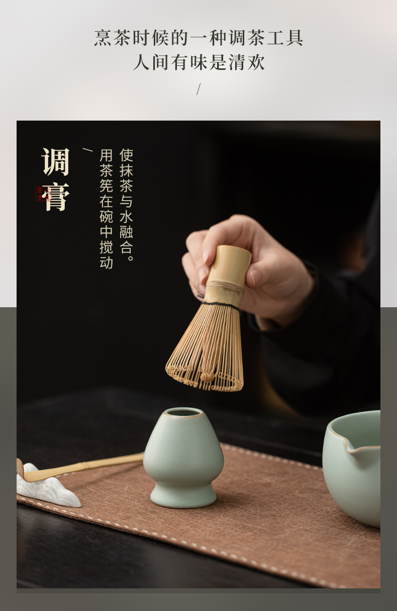 Bộ bốn món Matcha nửa ốc, trà đạo đặt hàng kiểu Nhật, bát matcha gốm sứ, bình trà đứng, bàn chải trà Baixi trà