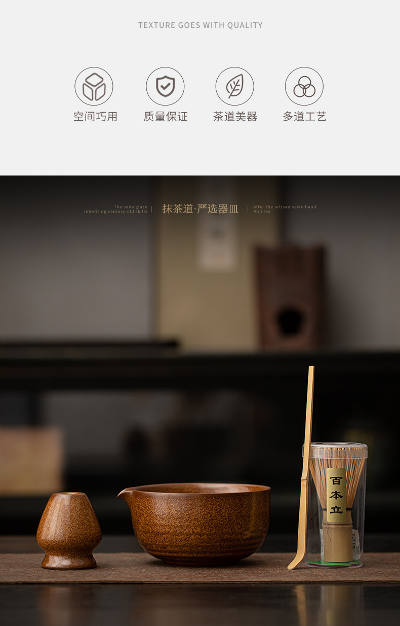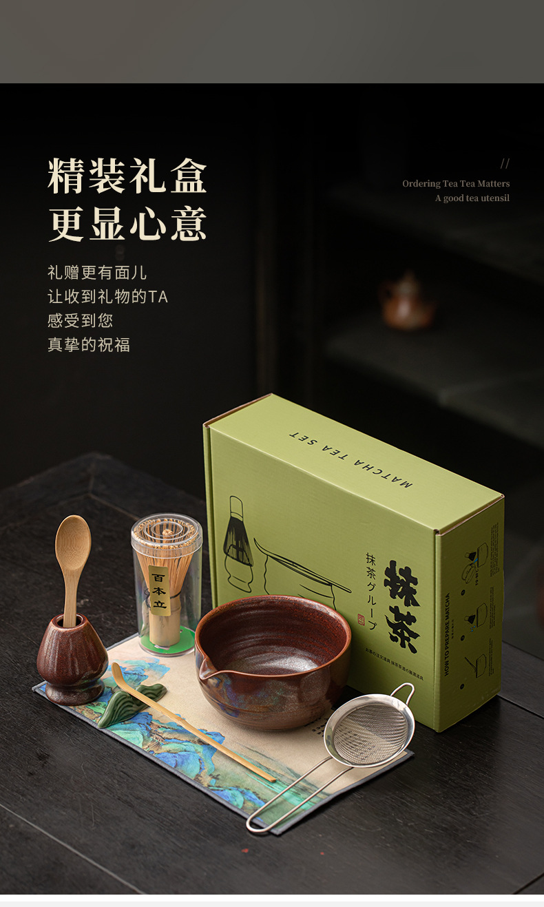 - Bộ bốn món Matcha nửa ốc, trà đạo đặt hàng kiểu Nhật, bát matcha gốm sứ, bình trà đứng, bàn chải trà Baixi trà