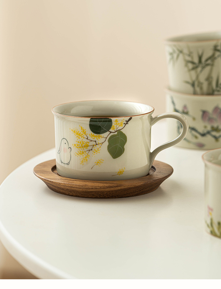 Bộ cốc cà phê gốm sứ Yuetu vẽ tay cốc latte cao cấp tinh tế cốc trà chiều văn phòng gia đình cốc mug